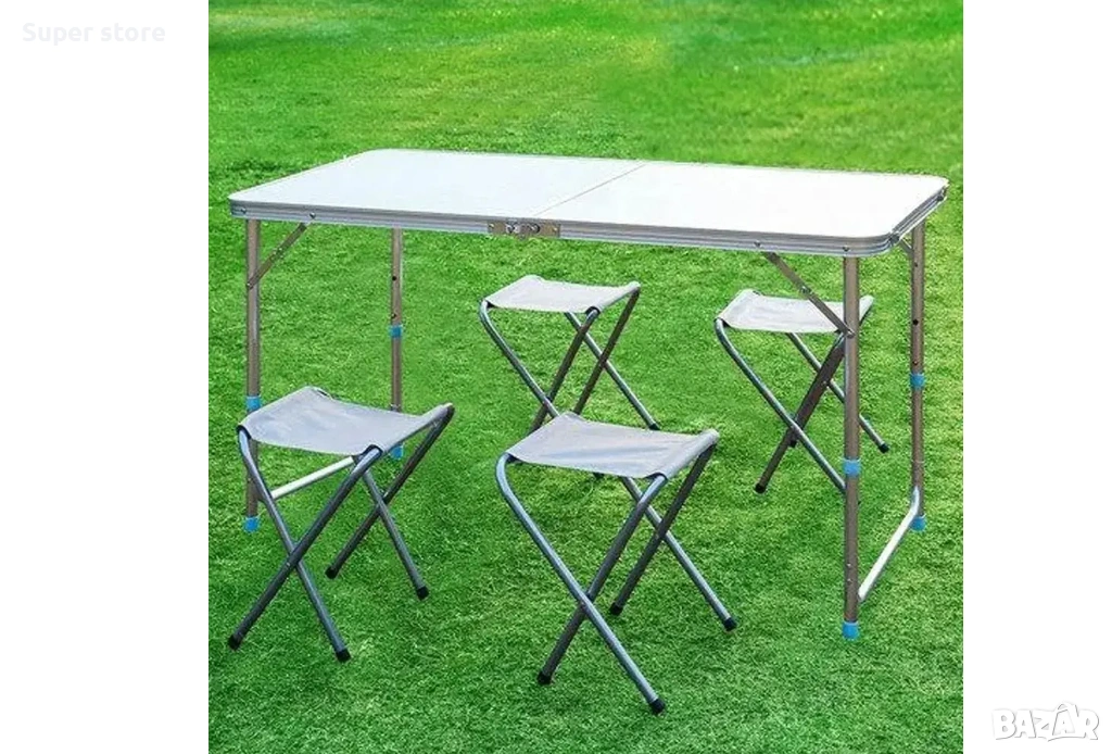 Тип: Сгъваема маса с 4 столчета (комплект)