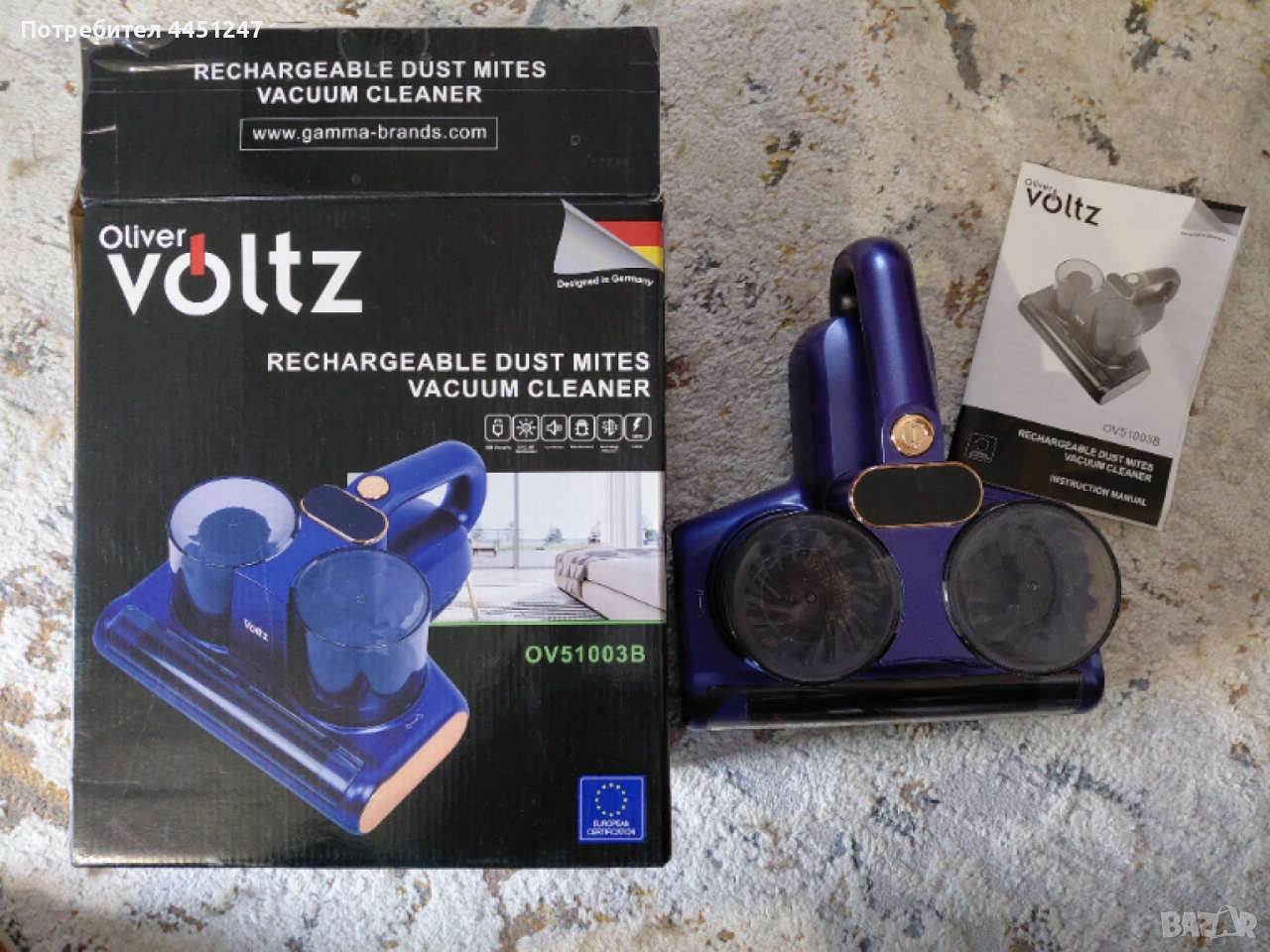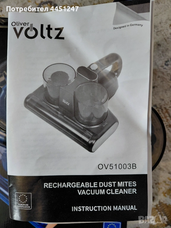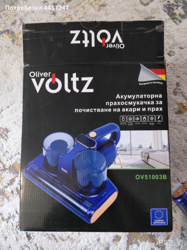 Акумулаторна прахосмукачка за почистване на акари и прах Oliver Voltz OV51003B