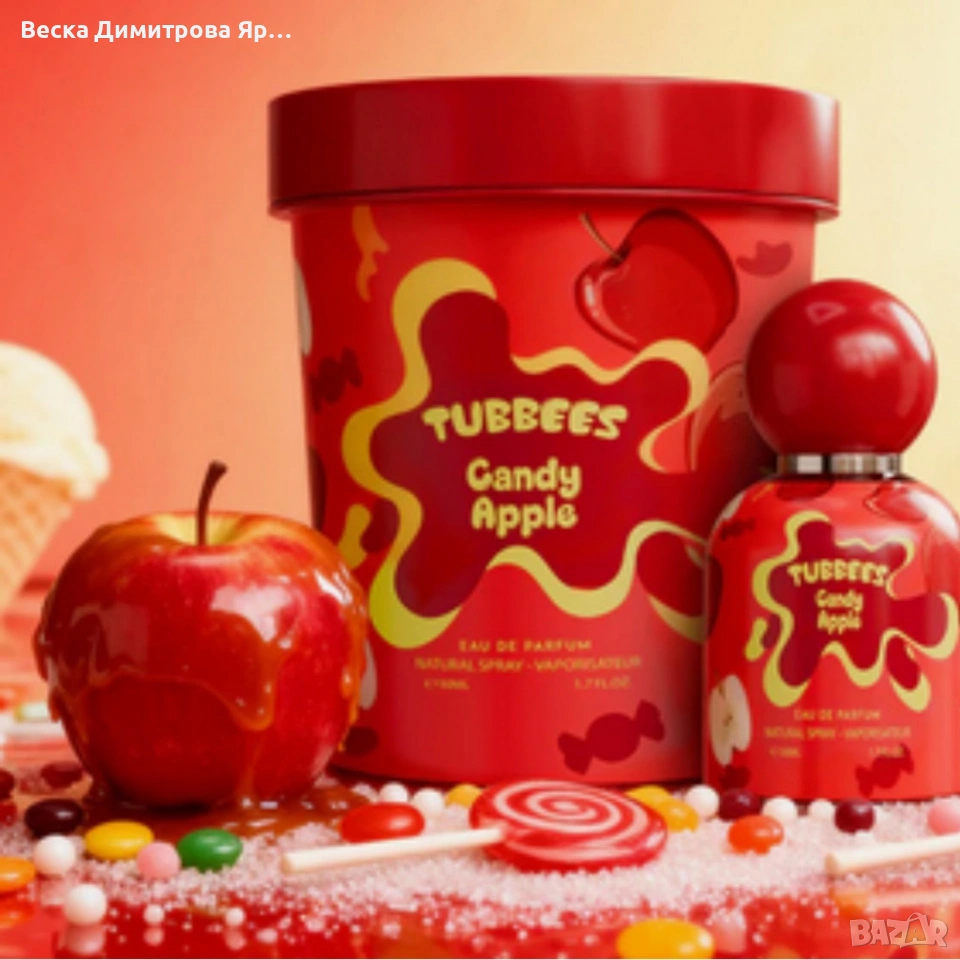 Технически характеристики на Детски парфюм Tubbees Candy Apple – Плодов гурме аромат със захарен памук, ябълка и ванилия - 50мл Тип: парфюмна вода, унисекс, детски аромат Обем: 50 мл Връхни нотки: захарен памук, слива, червена ябълка, круша Сърцевина: канела, захар, червено зърно База: мъх, мускус, ванилия, кехлибар Категория аромат: Плодови, гурме Този парфюм предлага баланс между дълготрайност и деликатност, създаден да бъде безопасен и приятен за детска кожа при умерена употреба. Подходящ за носене в училище, на семейни поводи и в моменти, когато малката личност иска да блесне с модерен, свеж и сладък аромат.