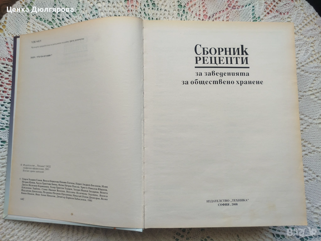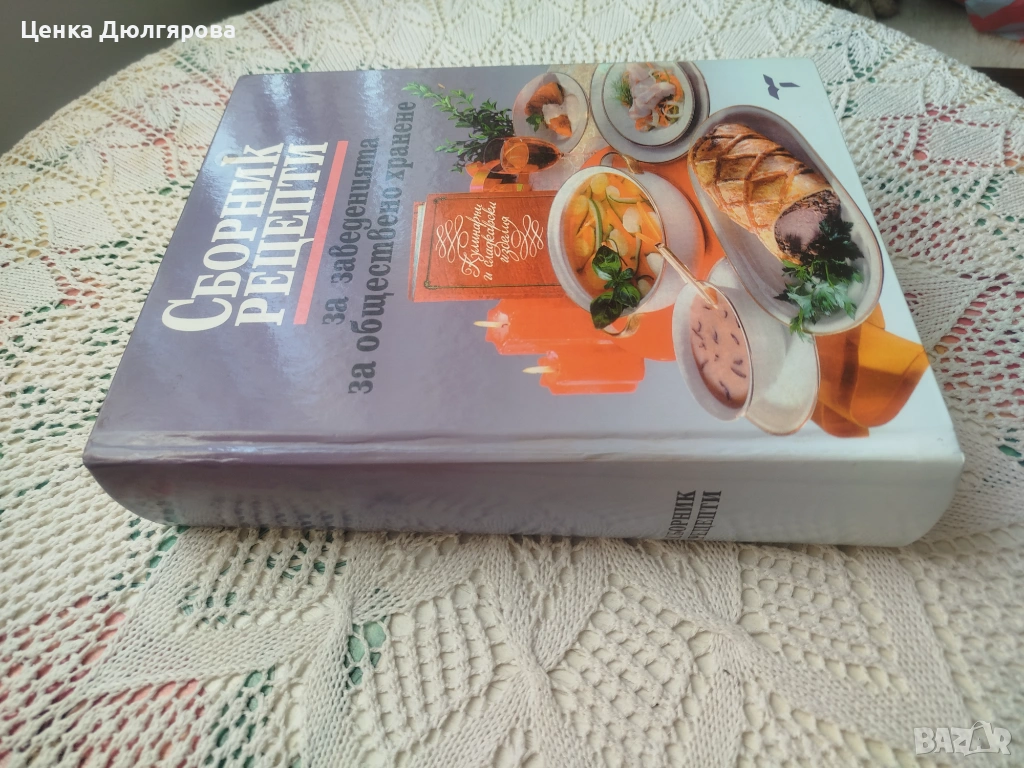 Сборник рецепти за заведенията за обществено хранене" на издателство "Техника", издание 2008 г. в голям формат с твърди корици в 992 страници. Четвърто преработено и допълнено издание. Много добро състояние видно от снимките.