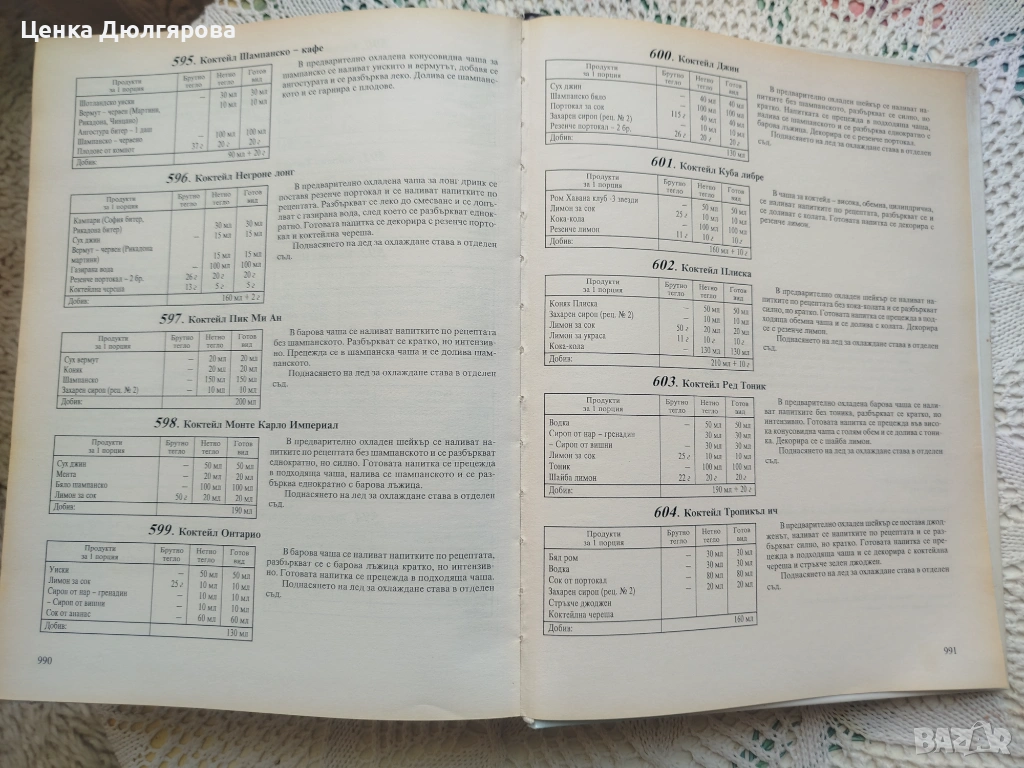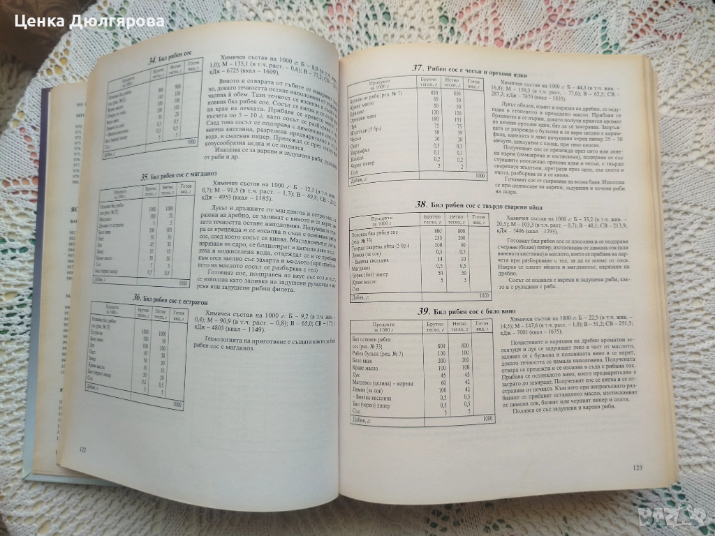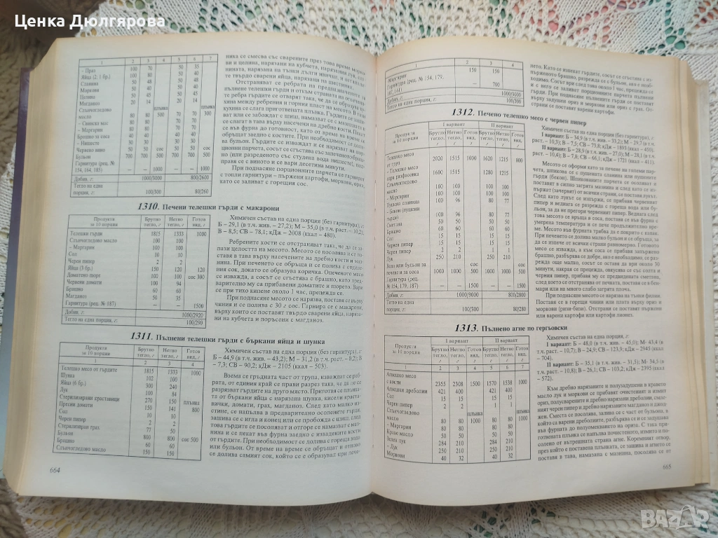 Изданието съдържа: повече от 1600 ГОТВАРСКИ РЕЦЕПТИ съставки на ястията сосове, гарнитури студени и топли предястия супи ястия от зеленчуци ястия от риба ястия от птици ястия от месо ястия от субпродукти ястия от дивеч ястия от българската национална кухня Повече от 500 СЛАДКАРСКИ РЕЦЕПТИ Кухненски десерти тестени сладкарски изделия замразени десерти десерти от българската национална кухня Повече от 100 РЕЦЕПТИ ЗА НАПИТКИ топли и студени напитки безалкохолни и алкохолни коктейли хигиенни изисквания към заведенията за хранене фири и добиви при студена и топлинна обработка на хранителни продукти естествени фири при хладилно съхраняване на кулинарни изделия норми за взаимозаменяемост на хранителните продукти при приготвянето на ястия в заведенията за хранене хигиенни изисквания към заведенията за хранене хигиенни норми и изисквания за добавките в хранителните продукти физиологични норми за хранене на населението химичен състав на някои хранителни продукти изисквания за въвеждане на обща щадяща диета в столовете за работници, служители и учащи се закон за храните