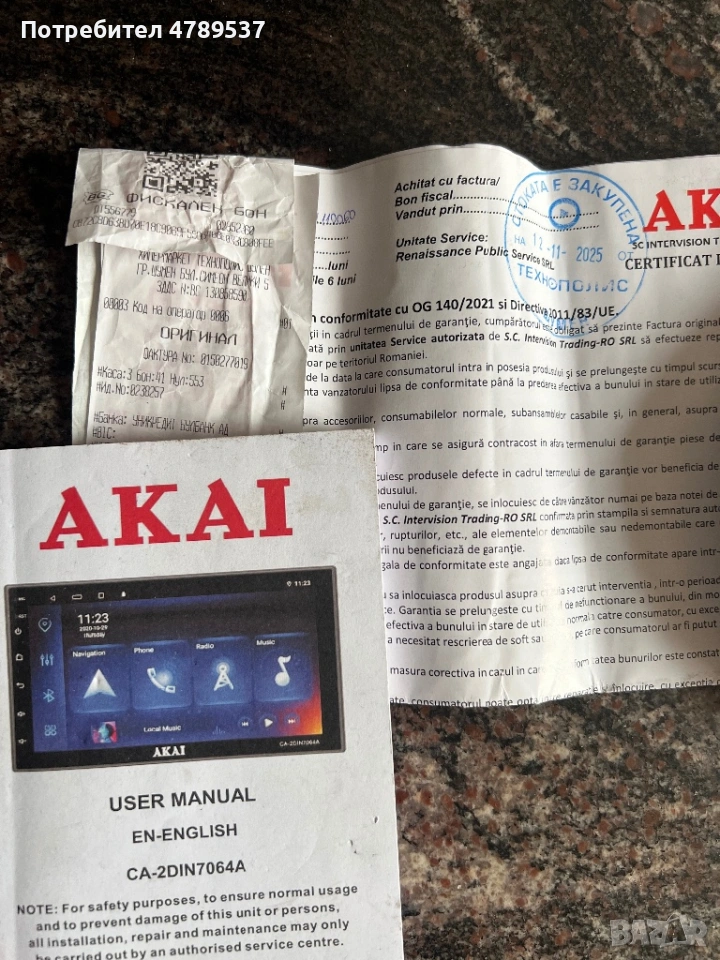 Продавам автомобилна мултимедия AKAI (2DIN размер) с тъчскрийн дисплей. Устройството е в много добро състояние, свалено от автомобил и работи без проблем.