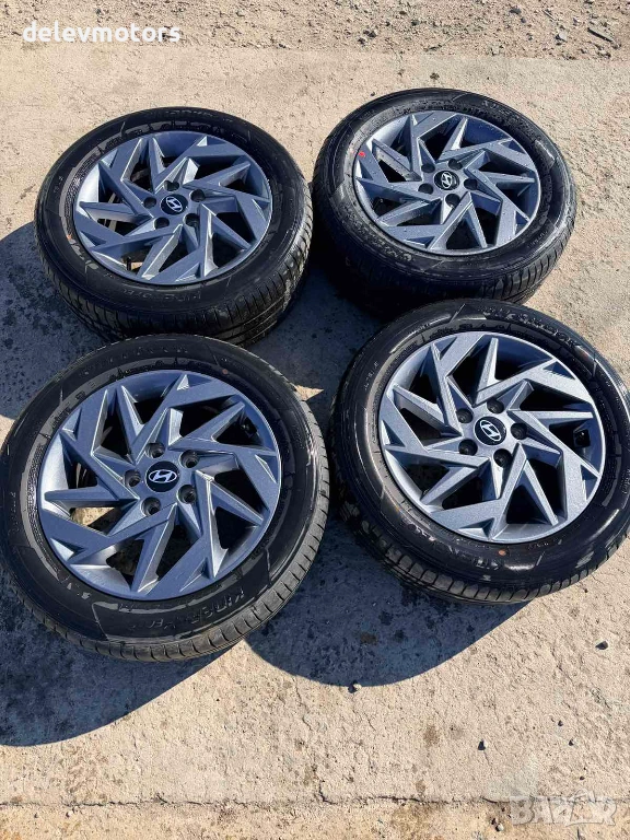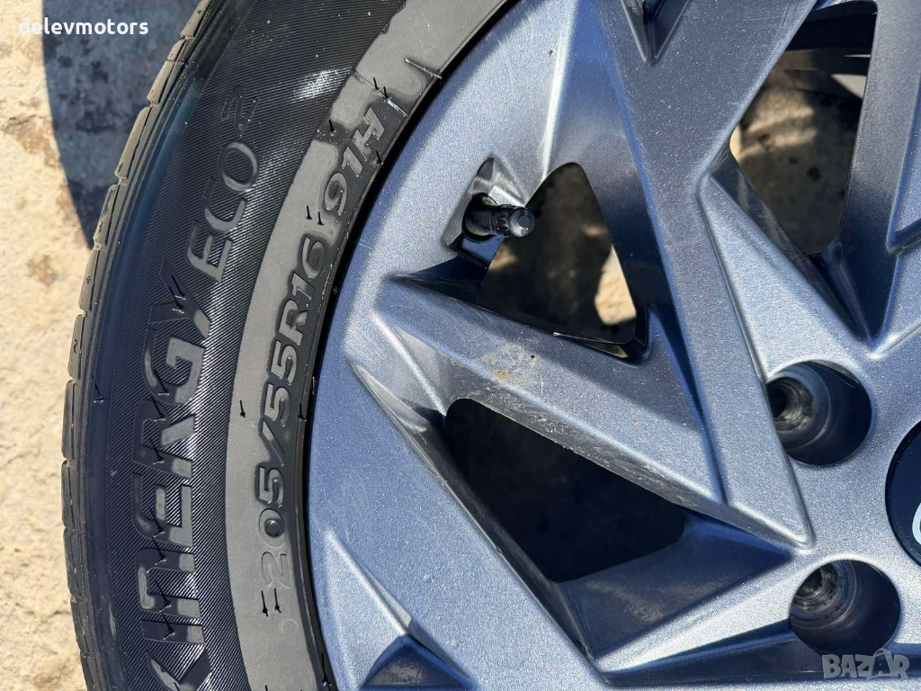Джанти алуминиеви 5x114.3 16 цола 6.5J, ET46 с гуми 205/55/16 от Hyundai Elantra 7, 1.6 MPI двигател G4FM, 123 кс., автоматик, 24000 км., 2024 г., Хюндай Елантра 7, 1.6 МПИ, engine G4FM, Automatic, 2024