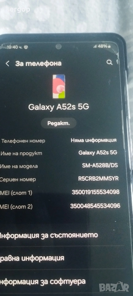 Самсунг галакси А52s 5G, снимка 1 - Samsung - 54114625 Самсунг галакси А52s 5G, снимка 2 - Samsung - 54114625 Самсунг галакси А52s 5G, снимка 3 - Samsung - 54114625 Самсунг галакси А52s 5G, снимка 4 - Samsung - 54114625 1/4