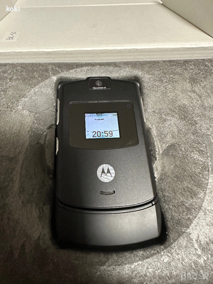 Motorola v3 като нов с абсолютно цялата окомплектовка - кутия с чисто нови слушалки, зарядно, дата кабел и аксесоари.