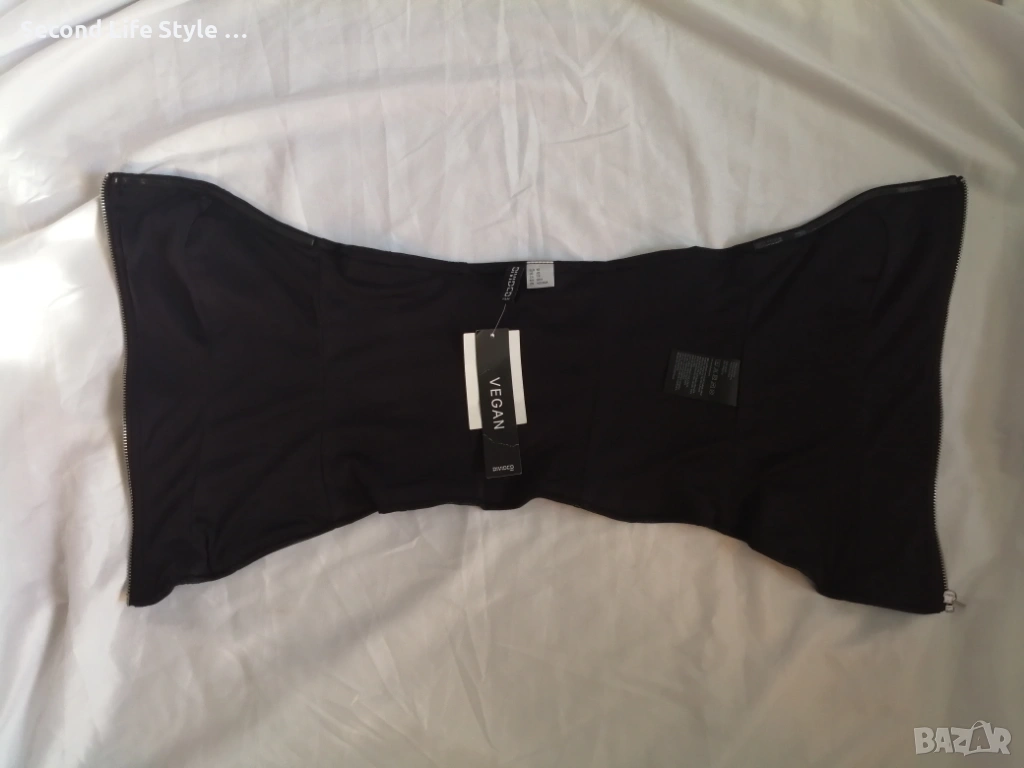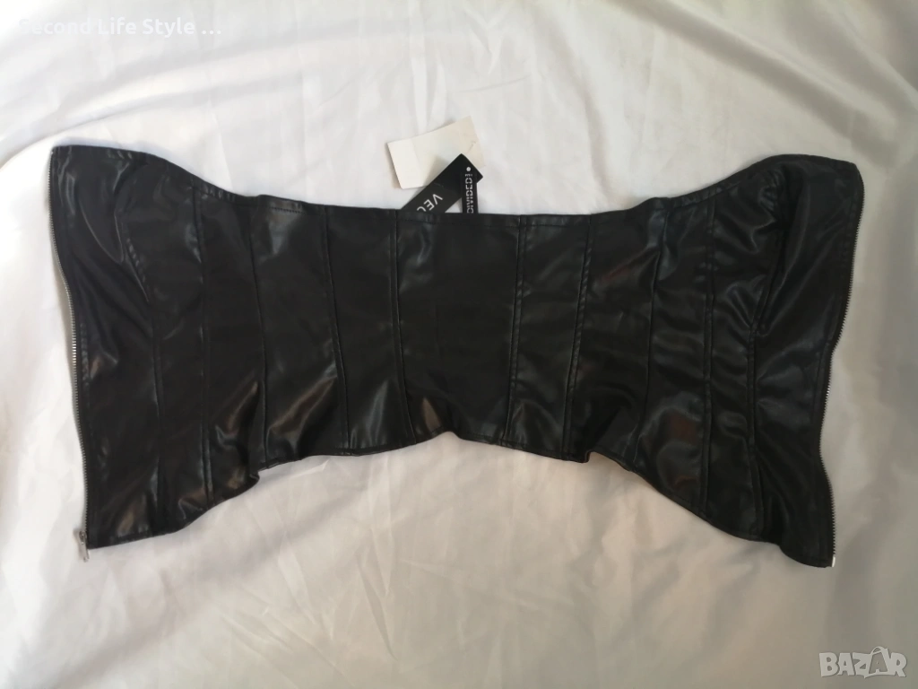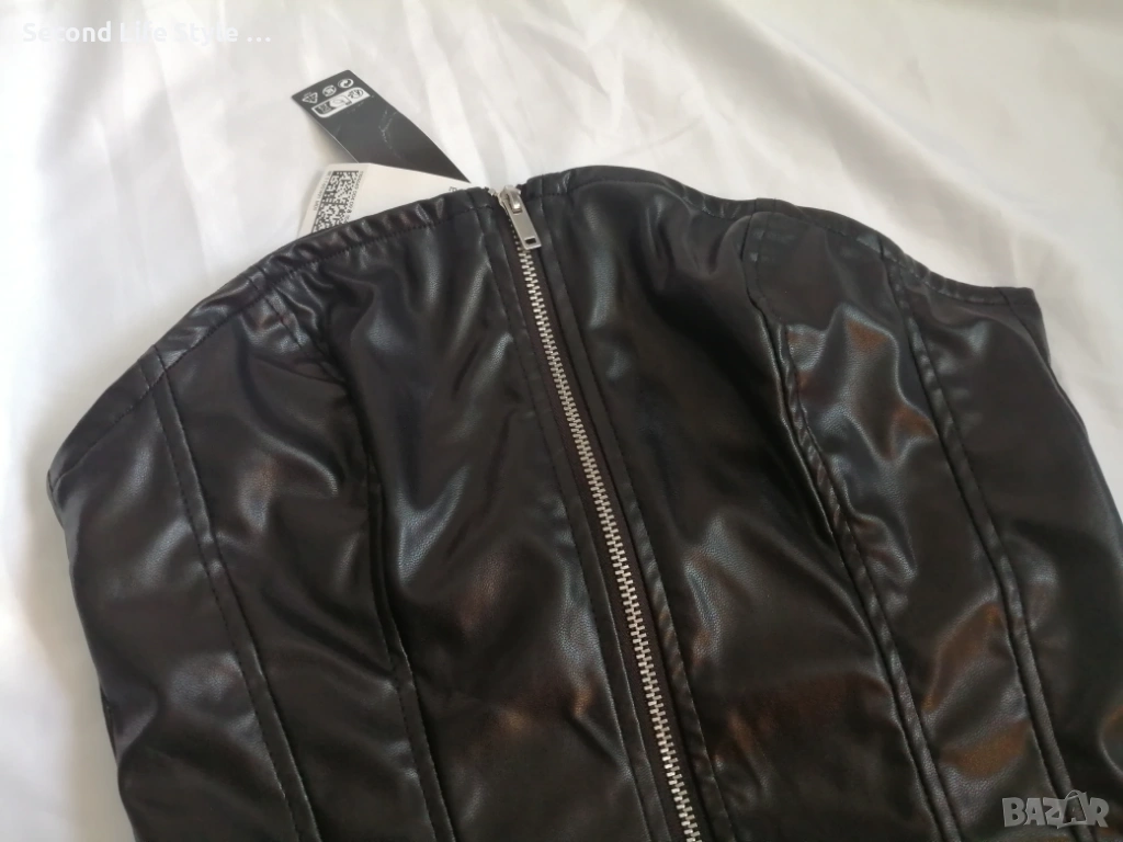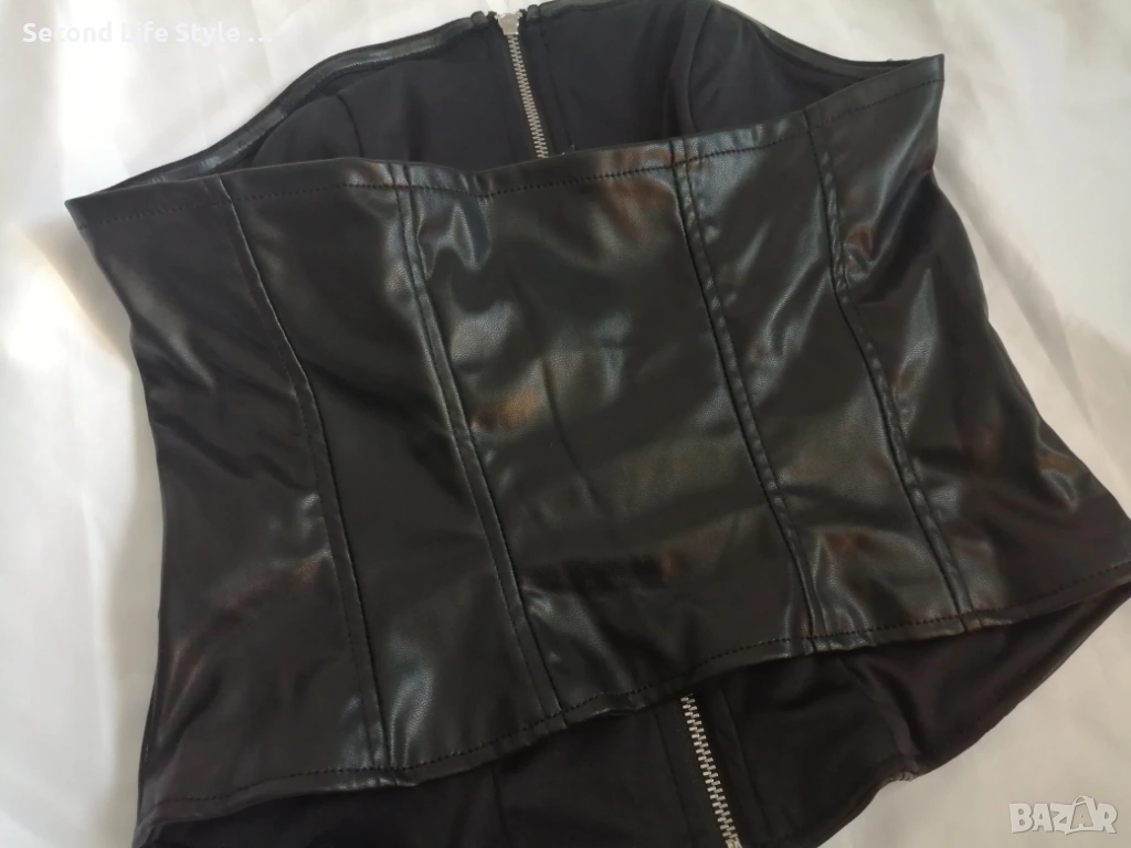 H&M нов кожен топ корсет-бюстие с цип отпред р-р XS