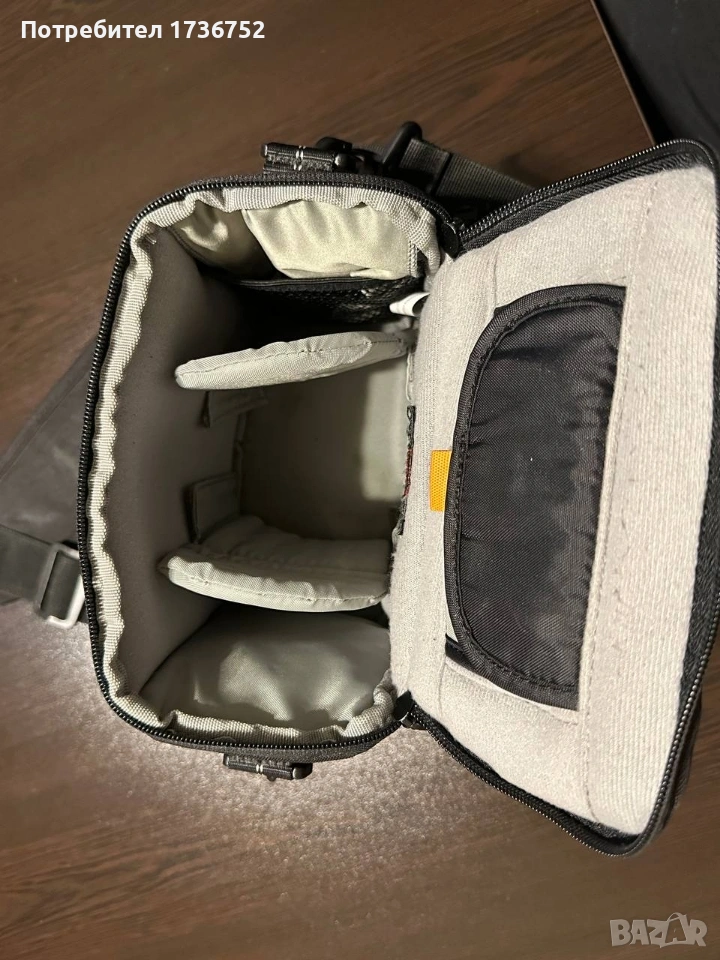 Продавам фотографска чанта в много добро външно състояние. Няма скъсано или протрито. С всички разделители. Единствената забележка е разпадналото се с годините гумено покритие, което се вижда на снимките.