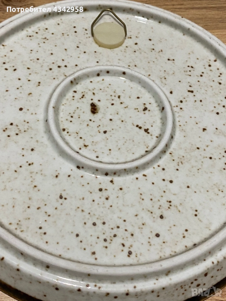Изработена от керамика (stoneware) с характерна пръскана глазура и тъмен кант. Много топъл и уютен ретро дизайн, подходящ както за декорация, така и за колекция.