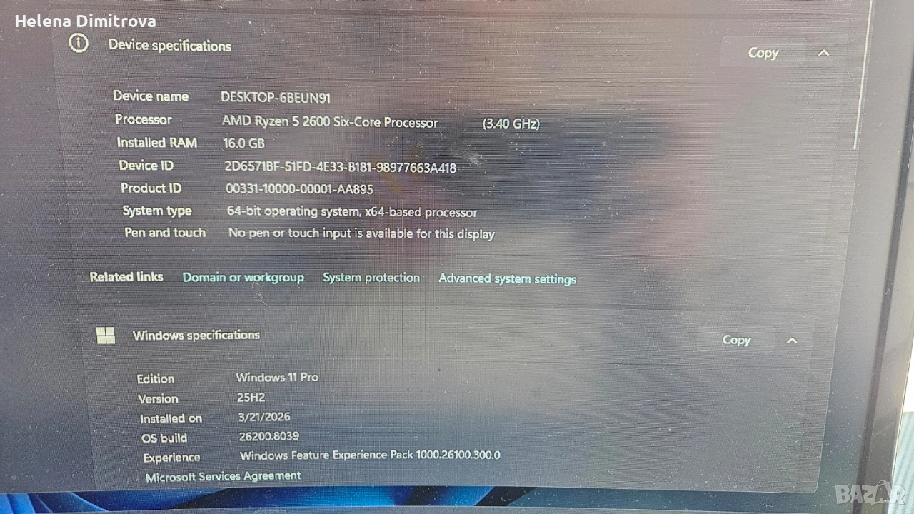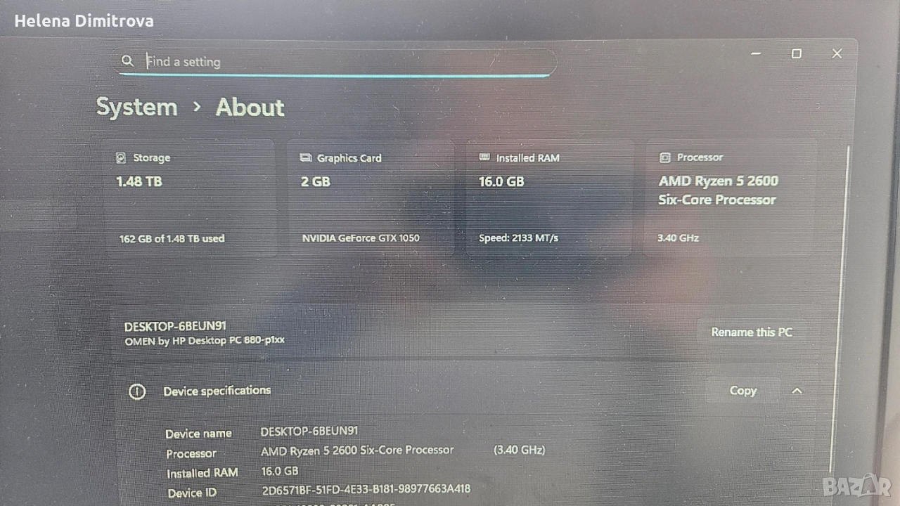 Процесор: AMD rizer 5 2600, Графична Карта : Nvidia GTX1050 2gb