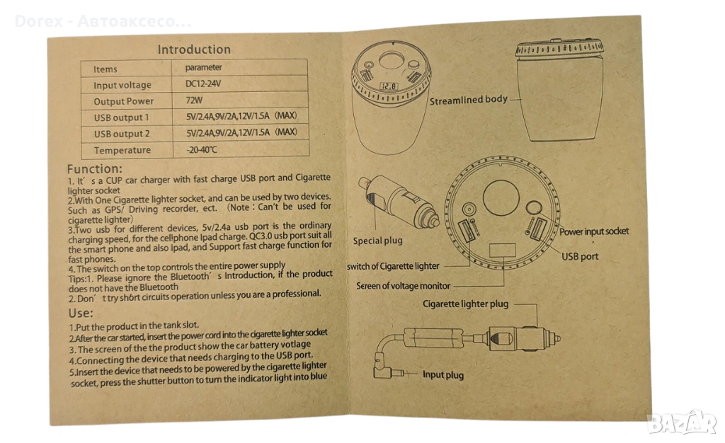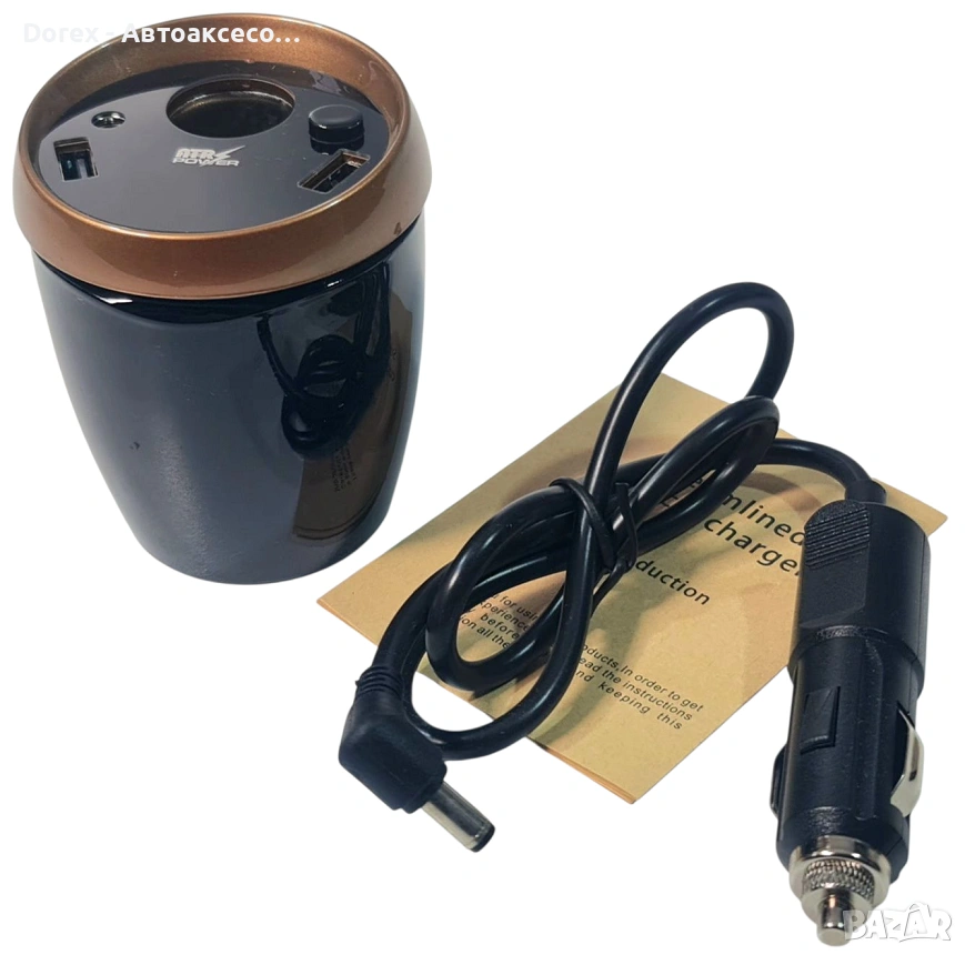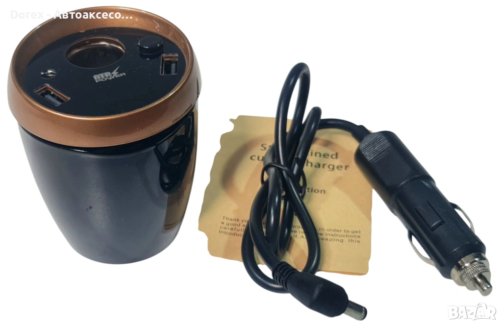 Интелигентно решение за захранване на всички ваши устройства в автомобила. Създаден да се поставя удобно в поставката за чаша, този аксесоар комбинира стил, стабилност и функционалност в едно.