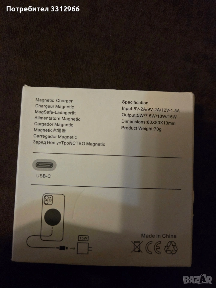 Магнитно безжично зарядно, Mag-Safe 15W бързо безжично зарядно, съвместимо с iPhone, снимка 1 - Apple iPhone - 54115437 Магнитно безжично зарядно, Mag-Safe 15W бързо безжично зарядно, съвместимо с iPhone, снимка 2 - Apple iPhone - 54115437 Магнитно безжично зарядно, Mag-Safe 15W бързо безжично зарядно, съвместимо с iPhone, снимка 3 - Apple iPhone - 54115437 1/3