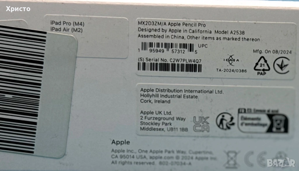 • Модел: Apple Pencil Pro