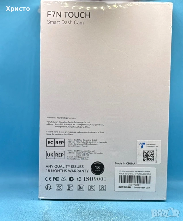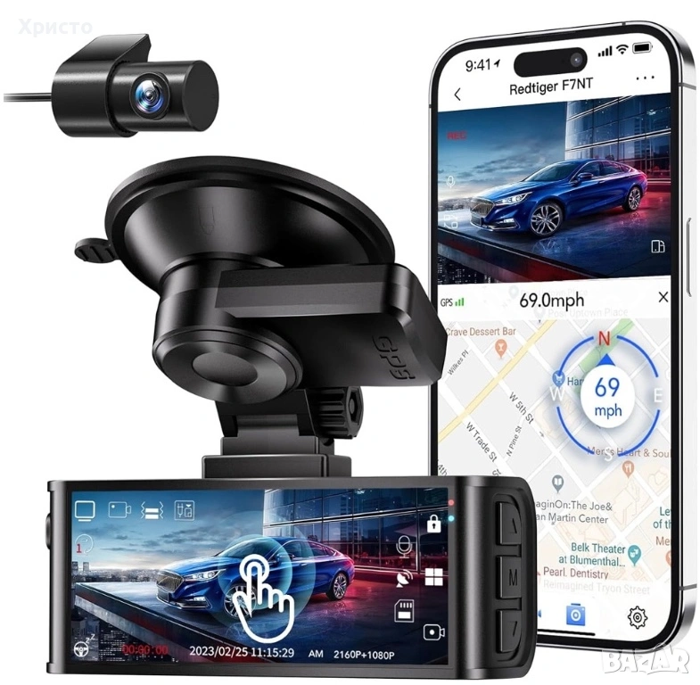НОВО!!! Видеорегистратор REDTIGER F7N Touch 4K+FHD, WiFi, Нощно виждане, 170°, 3.18" IPS
