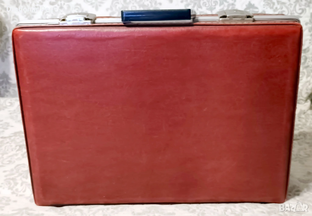 Продавам автентично дипломатическо куфарче (тип „дипломат“) с твърди стени. Изключително запазен екземпляр (като ново) в наситен червен/бордо цвят, който носи духа на 70-те и 80-те години. Идеален аксесоар за бизнес срещи, съхранение на важни документи, лаптоп или за нумизматични колекции.