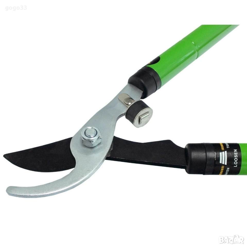 Професионална телескопична градинска ножица за клони, 68 см, HCS стомана с тефлоново покритие, до 35 мм рязане Цена: 15 евро Тип острие: ножично Материал на острието: HCS стомана с тефлоново покритие Дължина на острието: 8 см Обща дължина: 68 см (телескопична) Максимален диаметър на рязане: до 35 мм Материал на дръжката: стомана с противоплъзгаща гума Приложение: подрязване на овощни дървета, оформяне на храсти и жив плет, премахване на сухи клони, просветяване на корони