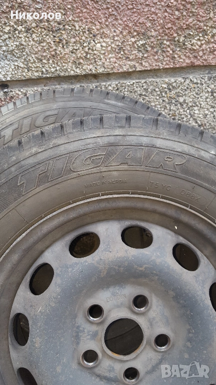 4 броя джанти с гуми за микробус! Джантите са 15 цола, ЕТ55, прави , стават за транспортер Т4, фолксфаген шаран и др. Гумите са 195/70/15С за лятото. Чифт предни марка " Tigar" 104/102, Дот 2022г. с 8мм грайфер. Чифт задни марка " Fulda" 104/102, стар дот, с 8, 5мм грайфер." Bridgestone" 104/102, стар дот с 10мм грайфер. Гумите са балансирани, без кривини! Цената е за целия комплект гуми и джанти заедно! По отделно или на чифтове не се продават! Само лично предаване!