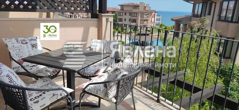 Явлена предлага апартамент в луксозен комплекс 'Калиакрия Ресорт', с. Топола между градовете Балчик и Каварна. Имотът е с обща квадратура 95 м2 /ЧЖП 81,06 м2/, състои се от дневен тракт с камина, спалня, втора малка спалня, тераса и комбиниран санитарен възел. Ет.4/4. Нефронтална морска панорама. Комплексът предлага следните удобства: 5 открити басейна, воден бар, барове и ресторанти, хранителен магазин, СПА център с фитнес/сауна/масаж, детски клуб, детска площадка, тенис кортове, аквапарк (в съседство), конна база, яхтинг, гмуркане, голф и др. В близост до комплекса има няколко плажа, отстои на 10 км от Каварна и на 15 км от Балчик. Имотът се предлага с наличното обзавеждане и оборудване, готов за нанасяне. Апартаментът е подходящ за ваканционно ползване, но също и за целогодишно пребиваване. Такса поддръжка 2200 лв/год. Много висока доходност от отдаване на нощувки. (yavlenaCOM/164462).