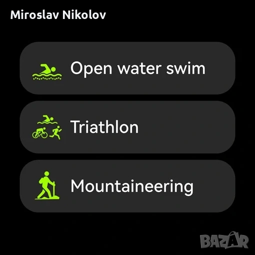 Спорт: Над 170 спортни режима, включително професионално проследяване на плуване (SWOLF, темпо, загребвания).