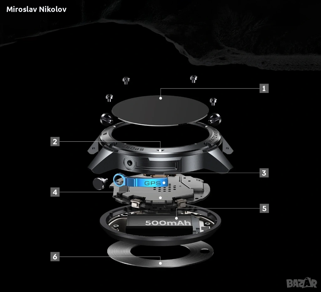 Батерия: Едно от най-силните му предимства – до 30 дни при нормално ползване и до 60 дни в икономичен режим. При интензивно натоварване издържа около 18 дни.