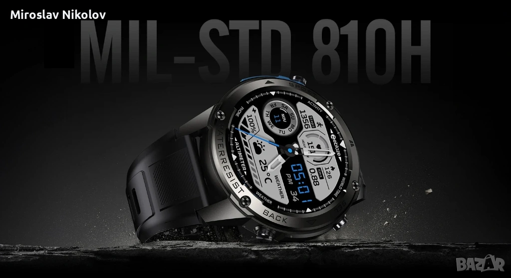 Военен стандарт: Преминал е тестове по стандарта MIL-STD-810H, издържайки на температури от -40°C до +70°C, шок и влага.