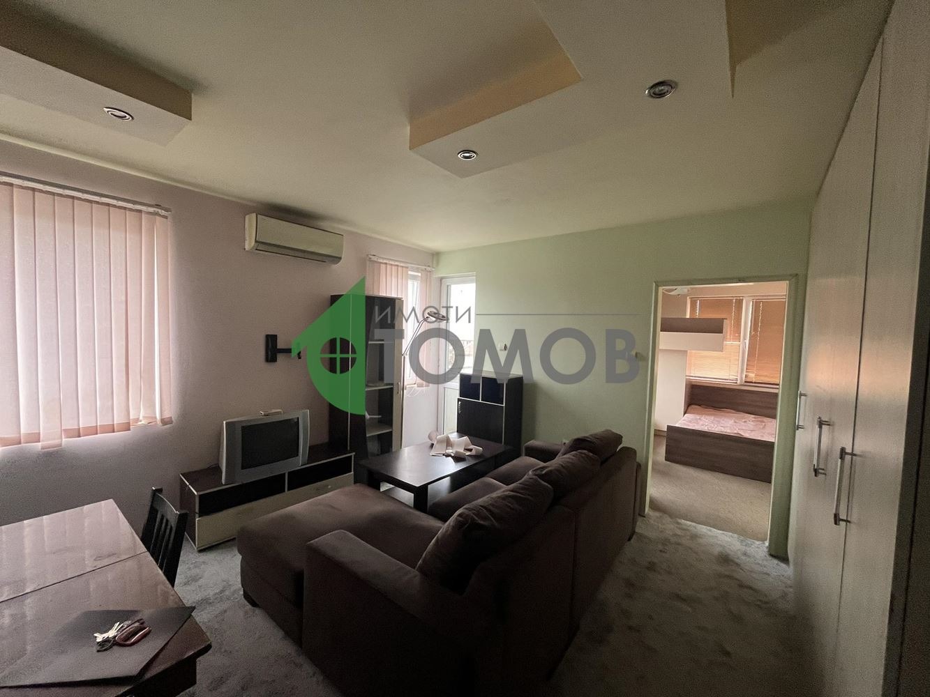 Имоти Томов представя на Вашето внимание двустаен тухлен апартамент под наем в кв. Добруджански. Имотът се състои от: