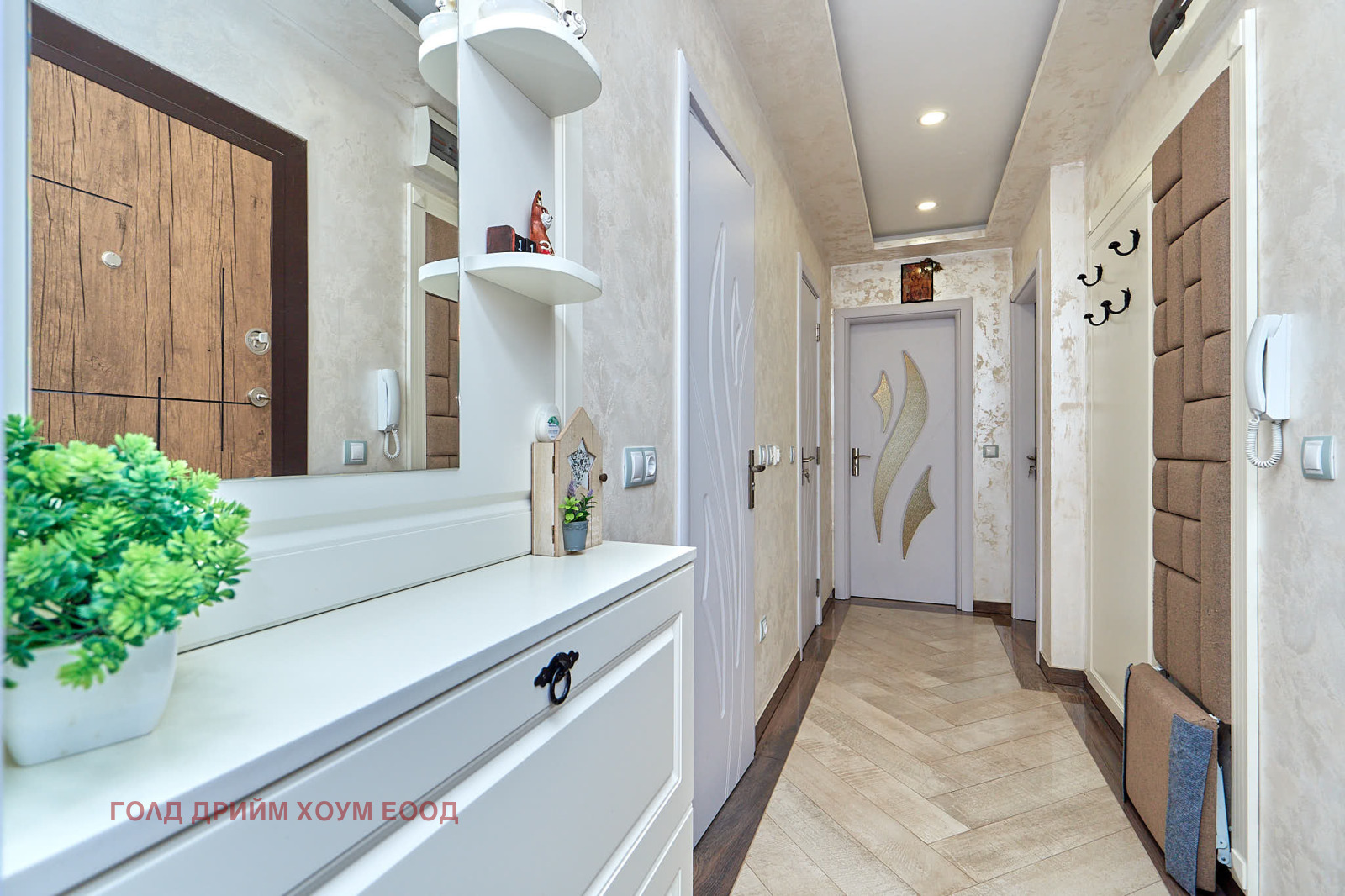 Представяме Ви, изключително уютен и стилно обзаведен апартамент, съчетаващ елегантност, комфорт и функционалност. Жилището е изпълнено в светли тонове с неокласически стил, които създават усещане за простор и хармония. Имота се състои от просторна светла дневна с кухненска част, две самостоятелни спални, две тераси, санитарен възел, мокро помещение.