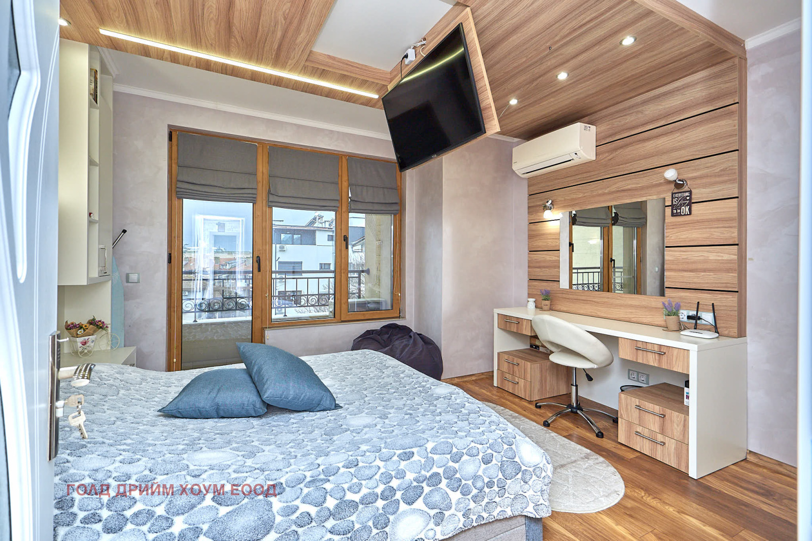 Спалните са просторни и комфортни, обзаведени с внимание към детайла - удобни легла, гардероби с достатъчно място за съхранение и стилно осветление, което допълва цялостната атмосфера на релакс. Имота се намира в супер център Бургас.