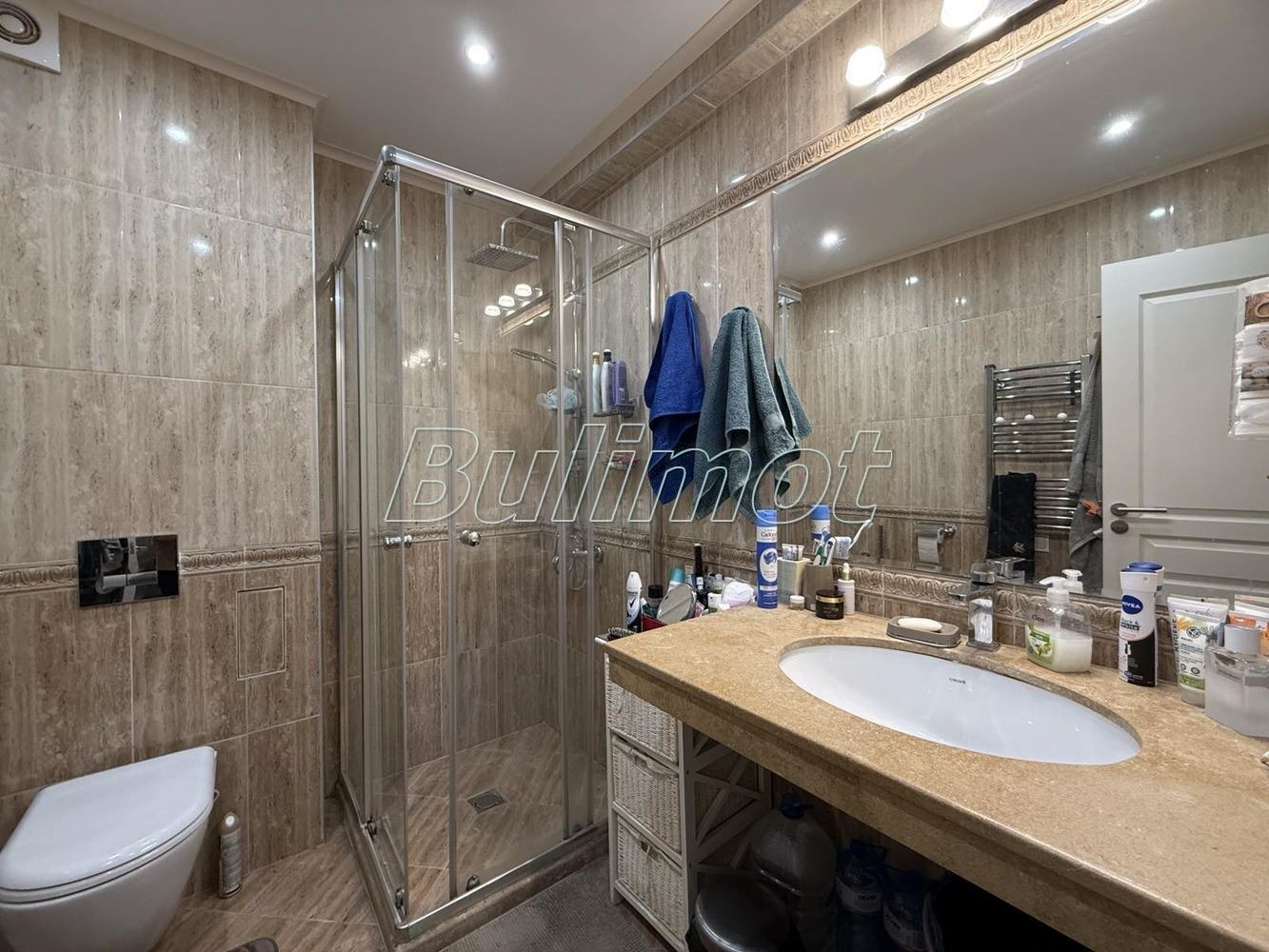 УНИКАЛЕН ИМОТ В БЛИЗОСТ ДО МОРЕТО! ГОЛЕМИ ПЛОЩИ! ЛУКСОЗЕН ИМОТ! КЛЮЧ В ОФИСА! БУЛ ИМОТ предлага за продажба прекрасен тристаен апартамент в един от най - добрите затворени комплекси в кк.Св. Св. Константин и Елена. Състои се от всекидневна с кухня, която има излаз към лоджия с югоизточно изложение, две спални, от които едната е с дрешник и с възможност да бъде втора баня с тоалет, баня с тоалет, килер /перално/ и коридор. Предлага се с наличното обзавеждане и оборудване. Възможност за закупуване на удобно паркомясто в подземен гараж.