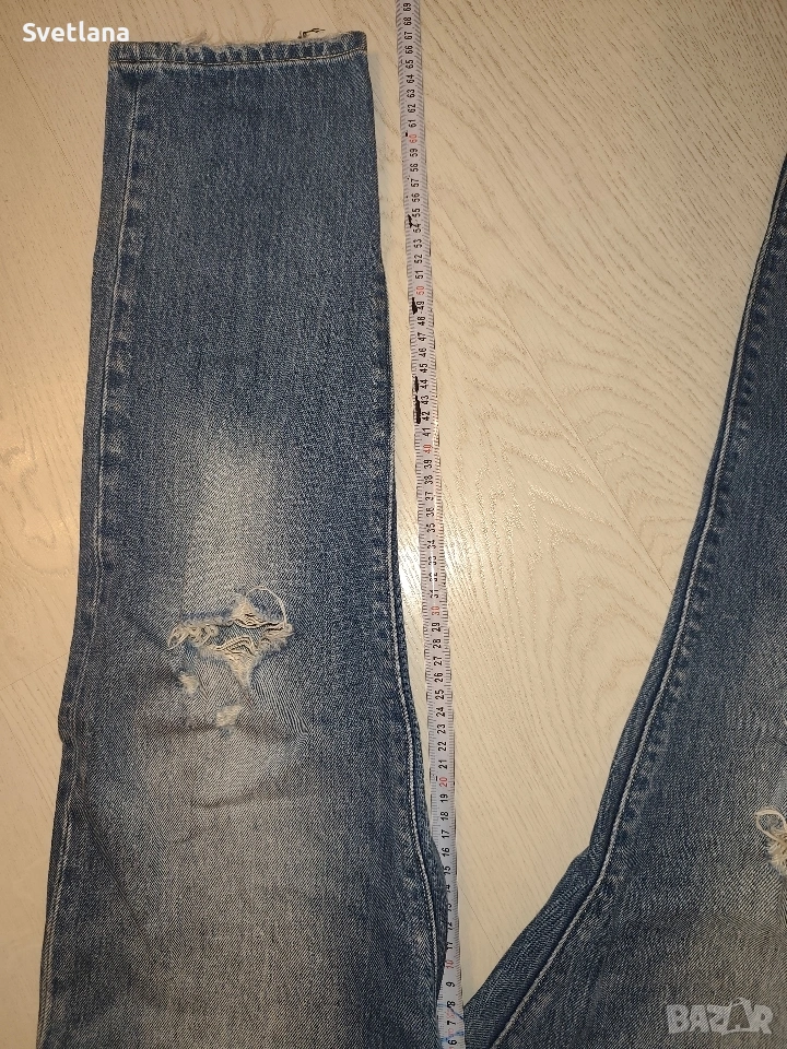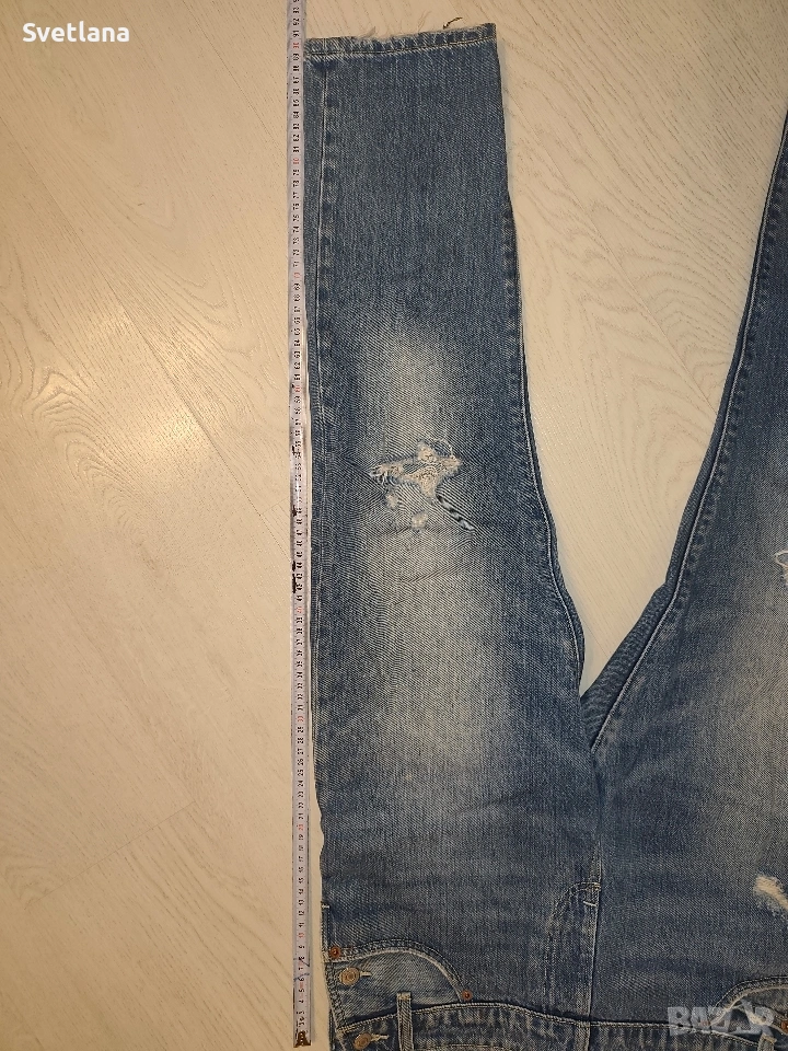 Дънков гащеризон Levi’s с модерен леко износен ефект и скъсани детайли. С регулируеми презрамки, удобен и стилен – подходящ за ежедневно носене. В много добро състояние, оригинален и качествен деним.
