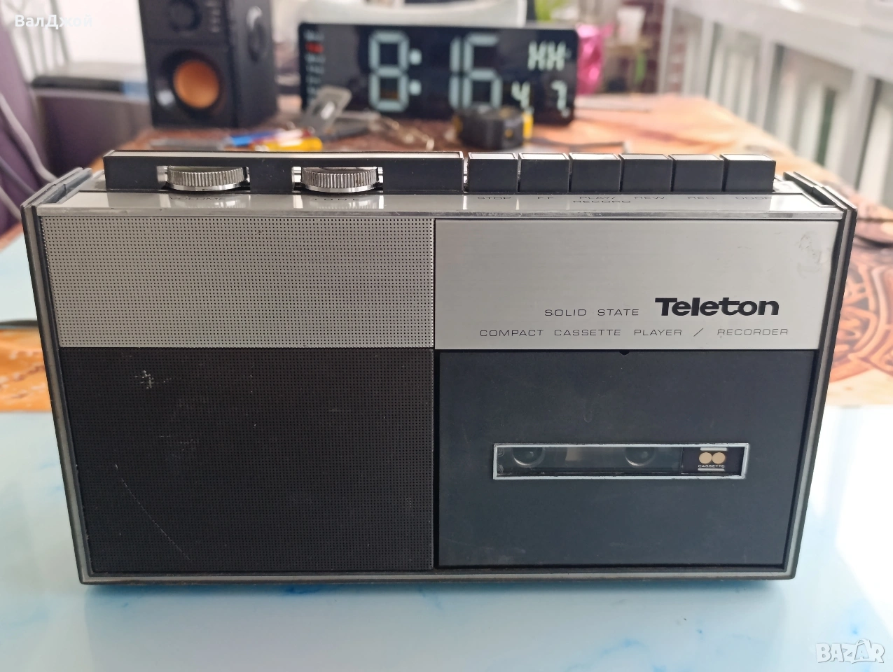 compact cassette player recorder. много добро състояние за годините си.. сменени ремъци свири добре. няма счупено пукнато. механиката 80% метална.. при интерес изпращам видео по Вайбър как работи.