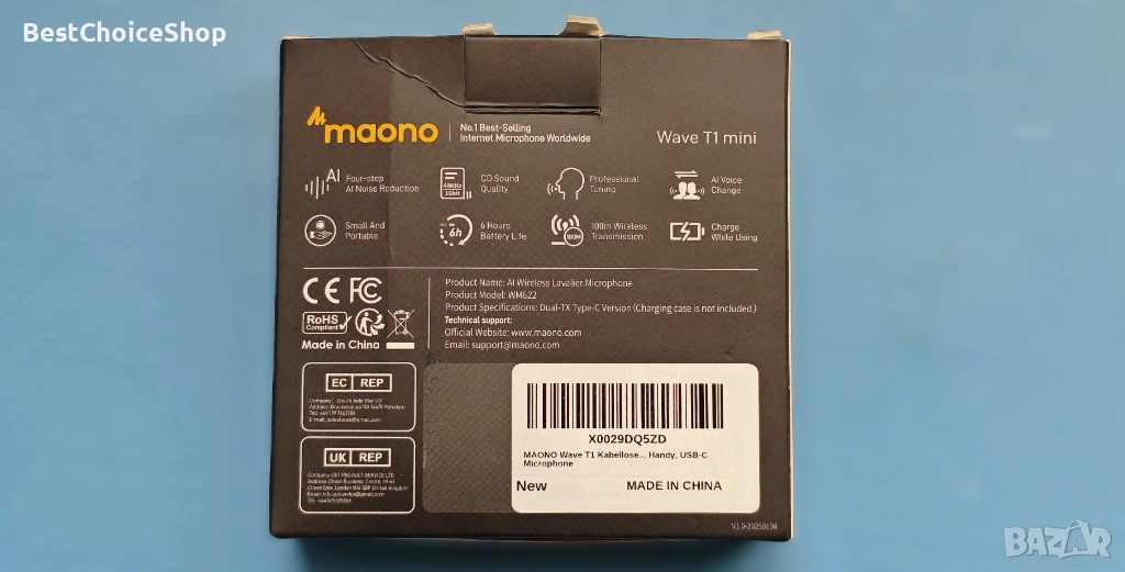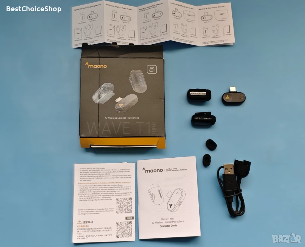 Мини микрофон, професионален звук: Мини микрофонът Maono Wave T1 е ултракомпактен и преносим, като същевременно осигурява 48kHz/16bit звук със студийно качество.