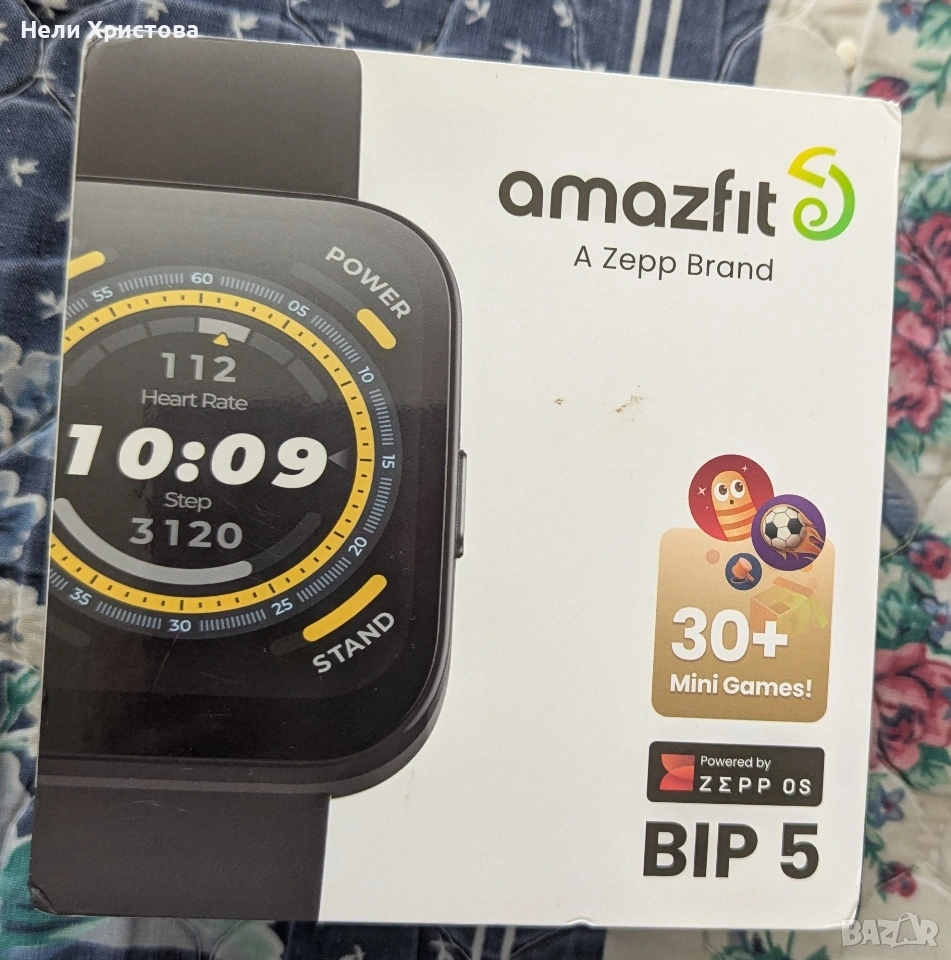 Смарт часовник Amazfit - Bip 5, 46 mm, 1.91’’, Характеристики: Екран: 1.91” TFT дисплей, 320x380 резолюция (260 PPI); Батерия: 300mAh, до 10 дни живот при стандартна употреба, до 26 дни в режим за пестене на енергия; Здраве: 24/7 мониторинг на сърдечен ритъм, стрес и SpO2 (кислород в кръвта); Спорт: 120+ спортни режима, автоматично разпознаване на 7 спорта, PeakBeats™ за измерване на VO2 Max; Свързаност: Bluetooth 5.2, поддръжка на телефонни обаждания чрез Bluetooth; Alexa: Интегриран Alexa за управление на интелигентни устройства, поставяне на аларми и проверка на времето; Часовникът разполага със: Магнитен заряден кабел, силиконова лента с класическа закопчалка (22mm); Рейтинг за водоустойчивост: IP68 (устойчив на пръски и пот); Поддръжка на платформи: Android 7.0 и по-нови, iOS 14.0 и по-нови; Позициониране: 4 GNSS (Global Navigation Satellite System); Гласови уведомления: Реално време за дaнни. Нов.