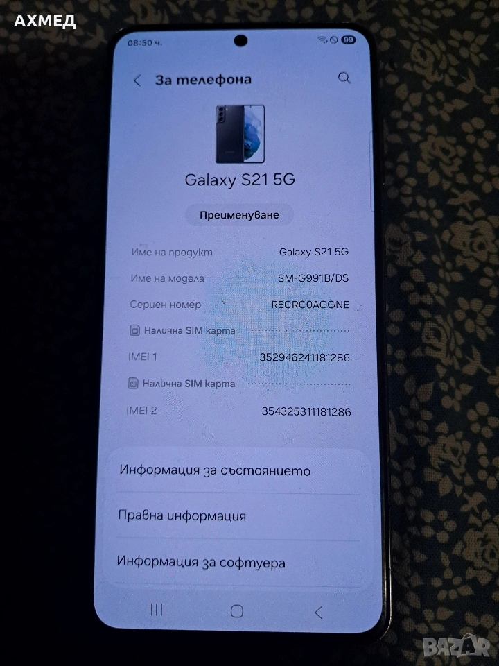 Samsung S21 5G 128GB/8GB RAM-Android 15 black, снимка 1 - Samsung - 54117928 Samsung S21 5G 128GB/8GB RAM-Android 15 black, снимка 2 - Samsung - 54117928 Samsung S21 5G 128GB/8GB RAM-Android 15 black, снимка 3 - Samsung - 54117928 Samsung S21 5G 128GB/8GB RAM-Android 15 black, снимка 4 - Samsung - 54117928 Samsung S21 5G 128GB/8GB RAM-Android 15 black, снимка 5 - Samsung - 54117928 Samsung S21 5G 128GB/8GB RAM-Android 15 black, снимка 6 - Samsung - 54117928 Samsung S21 5G 128GB/8GB RAM-Android 15 black, снимка 7 - Samsung - 54117928 Samsung S21 5G 128GB/8GB RAM-Android 15 black, снимка 8 - Samsung - 54117928 Samsung S21 5G 128GB/8GB RAM-Android 15 black, снимка 9 - Samsung - 54117928 Samsung S21 5G 128GB/8GB RAM-Android 15 black, снимка 10 - Samsung - 54117928 1/10