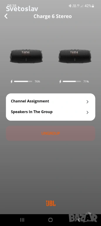 Продавам двете си JBL Charge 6 портативни Bluetooth тонколони.