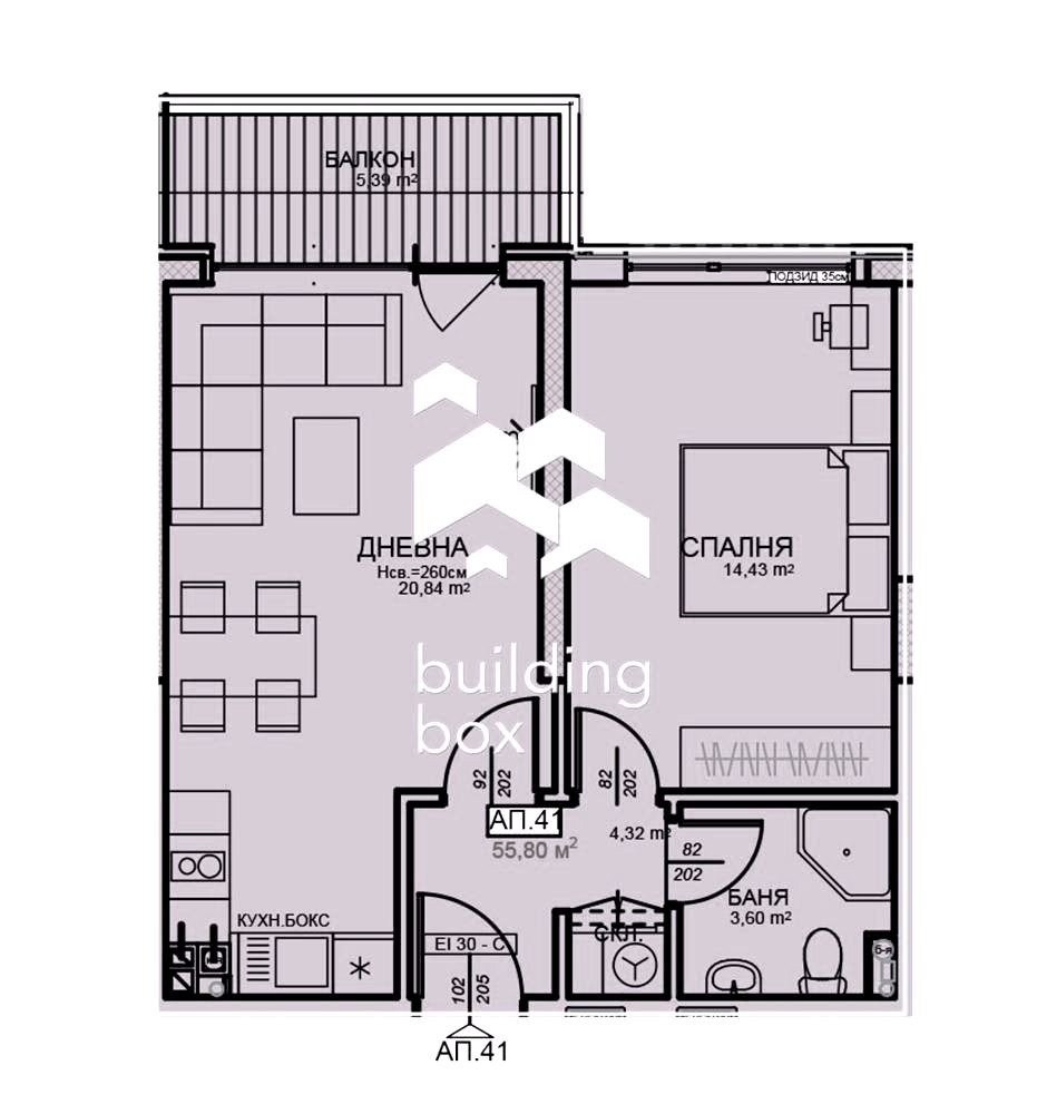- Нетна площ: 55.80 кв.м.;