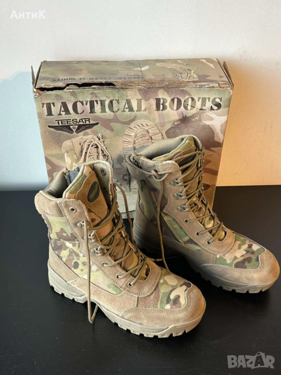 НОВИ! Не обувани токтически обувки TEESAR MULTICAM. Купувани от магазин Бранник преди повече от година. По кутията има забележки (виждат се на снемките).