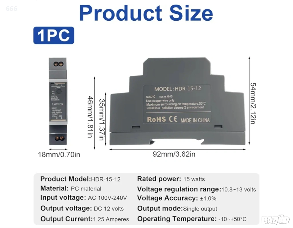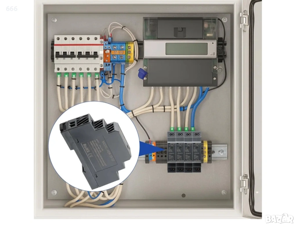 3. Компактен дизайн за гъвкава употреба С компактните си размери от само 90 x 54,5 x 17,5 мм, захранването се вписва лесно във всички стандартни модели шкафове с DIN шина. Това е решение за пестене на място, което е голямо предимство при интегриране в съществуващи системи. Малкият формат го прави удобен избор за тесни инсталации в сгради и промишлени съоръжения, където наличното пространство е ограничено.