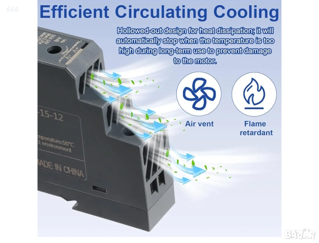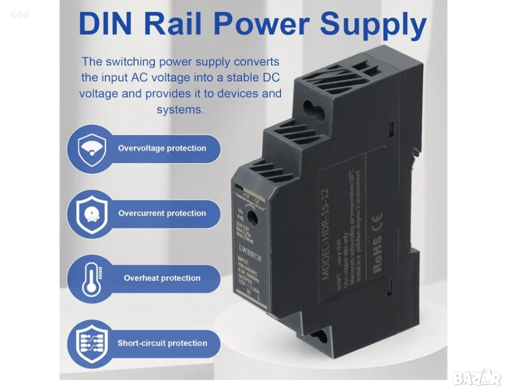 1. 12V DIN шина за надеждно захранване. Захранването за DIN шина 12V DIN шината осигурява стабилно и надеждно изходно напрежение DC 12V с изходен ток 1,25A и обща мощност 15W. С висока ефективност от 89%, то осигурява ефикасно захранване в домашната и индустриалната автоматизация. Постоянното захранване го прави идеален за приложения като звънчеви системи, системи за контрол на достъпа и други процеси на автоматизация.