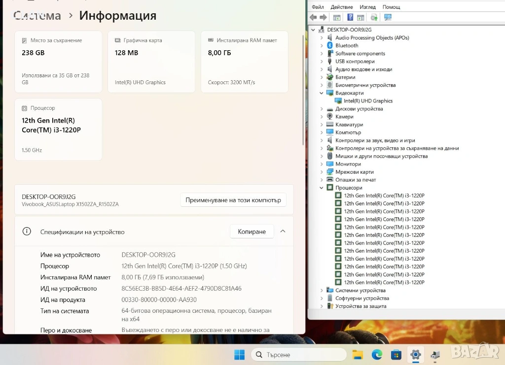 Asus Vivobook R1502Z i3 1215P/8GB/256SSD/FHD/Подсветка → Обява 54118471