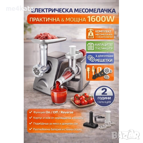електрическа месомелачка, месомелачка с приставка за домати, месомелачка 1600w, месомелачка за сок, mesomelachka, melachka za meso, melachka s domaten sok, elektricheska mesomelachka