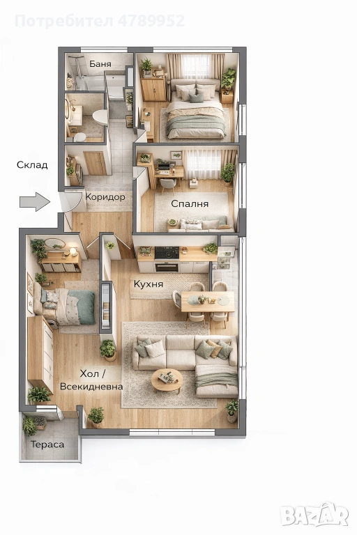 Таванско помещение (двустаен апартамент) – 50 м² на ет.3 ,