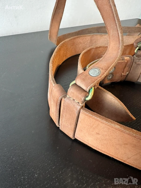 НОВ! Не ползван кожен сержантски колан с портупей.