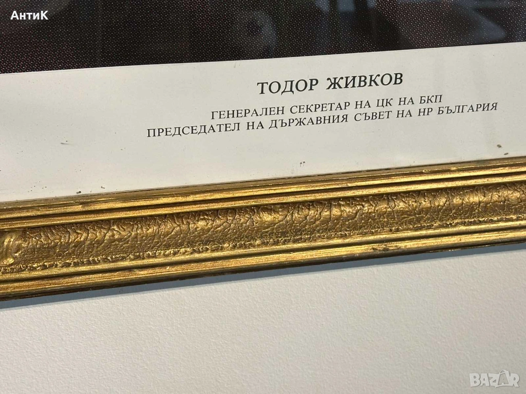 Голям автентичен портрет на другаря Живков. Страхотна дървена рамка с гипсови орнаменти. Отлино състояние за годините си!