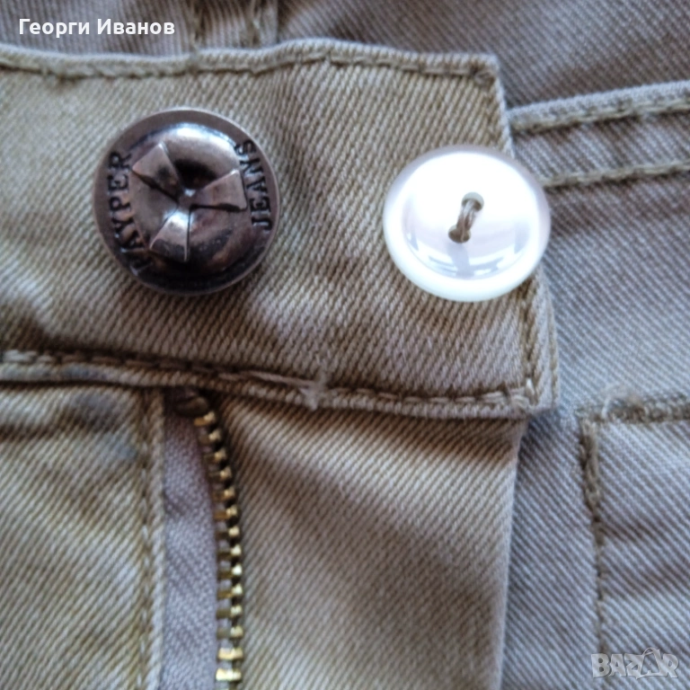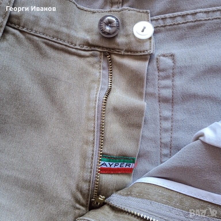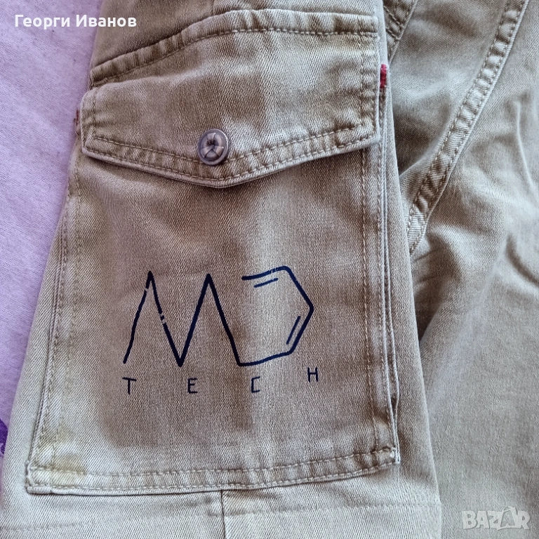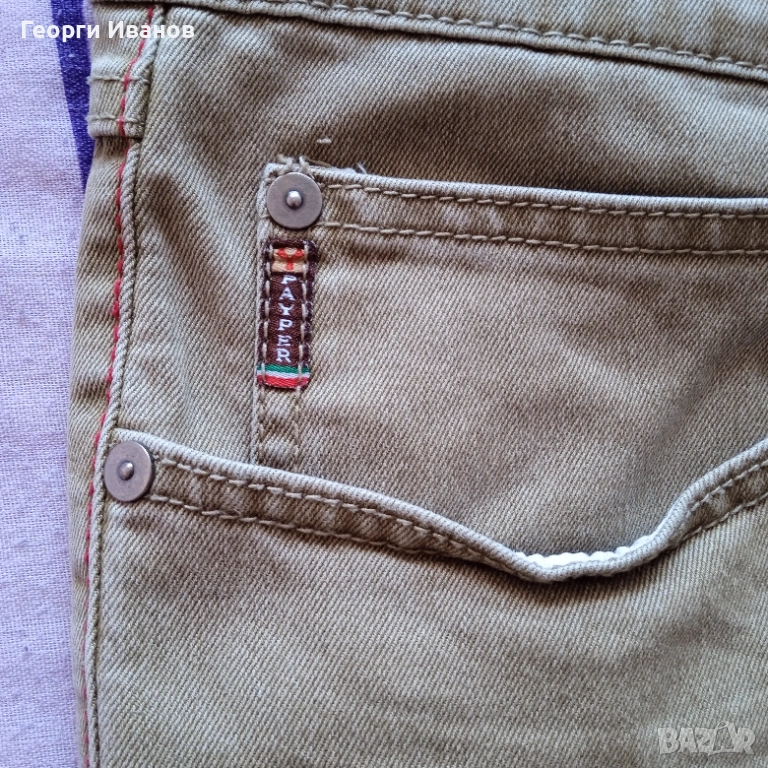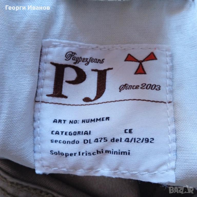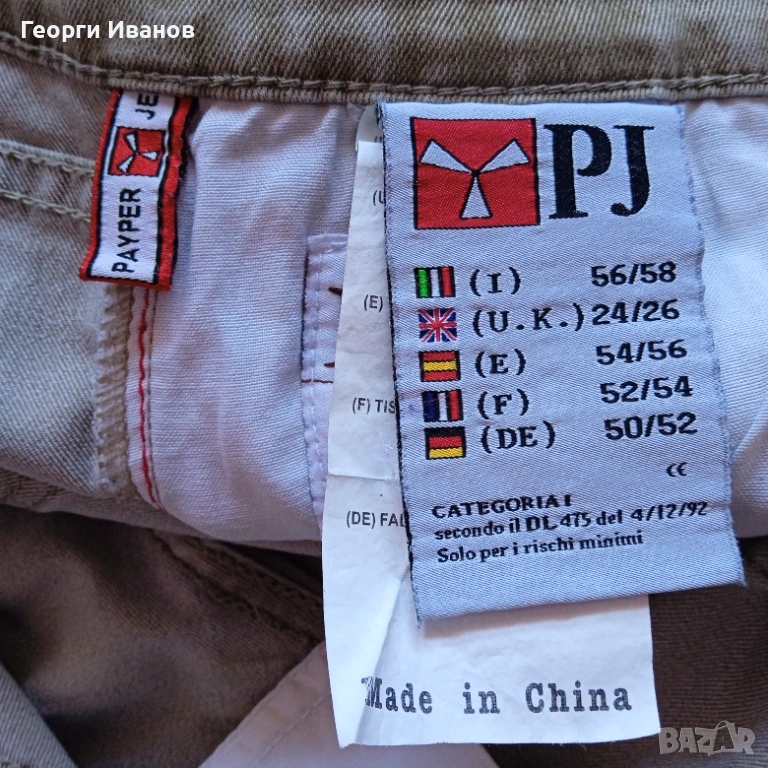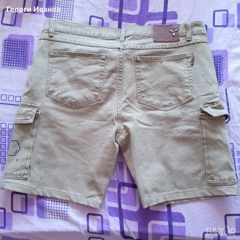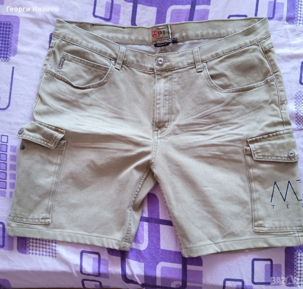 Продавам оригинални къси карго-дънки на италианската марка Payper Jeans, 70% памук, 28% полиестер и 2% еластан, цвят каки / охра. Носени са половин лято и са в перфектно състояние без никакви забележки като петна, ожулено, протрито или скъсано, на практика неразличими от чисто нови! Размерът отговаря на XL с широчина на талията 50 см едностранно и външна дължина 50 см. Разполагат с 4+1 стандартни джоба и два странични с капаци на тик-так копче плюс велкро, както и с допълнително пришито копче за следпразнично „отпускане на колана“. 😊 Отстъпка -10% от доставката като пощенска пратка до офис САМО на Еконт!!! (БЕЗ Спиди!!!) с преглед и тест, лично предаване за Бургас.