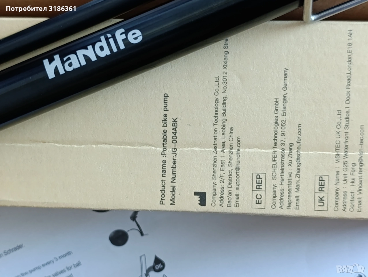 Handife portable bike pump prof. → Обява 54119062