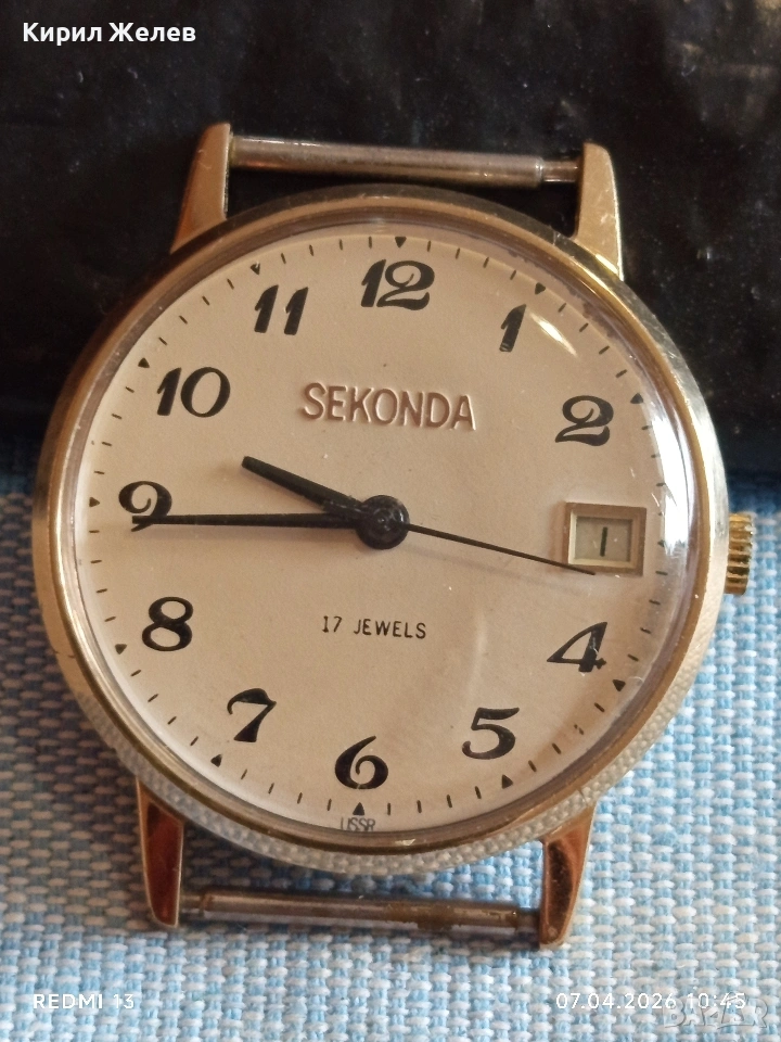 Стар механичен часовник SEKONDA работи позлатен Au5 перфектно състояние за КОЛЕКЦИЯ 54474 → Обява 54119161