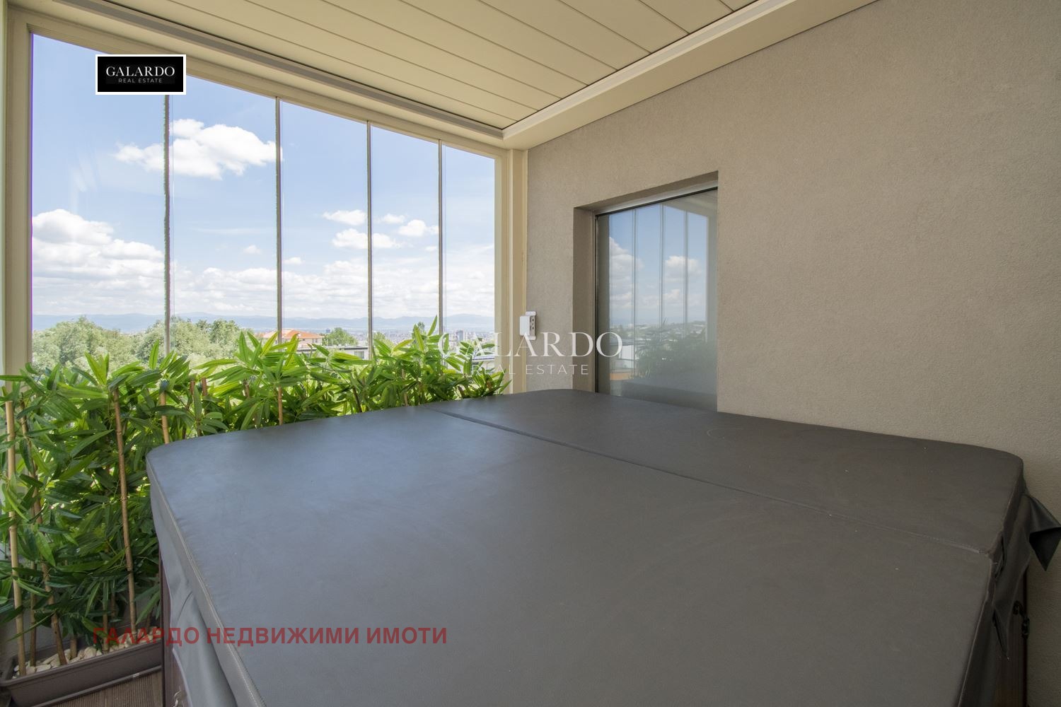 Южната тераса, с изглед към Витоша, е с големина 60 кв. м., изцяло покрита и с настилка от гладък термоясен, което позволява лесна поддръжка.