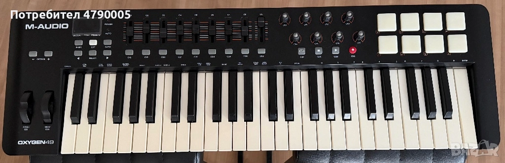 Продавам M-Audio Oxygen 49 MIDI клавиатура в много добро работно състояние. Всички клавиши, фейдъри, копчета и падове работят коректно. Използвана е само в домашно студио, без сценична употреба.