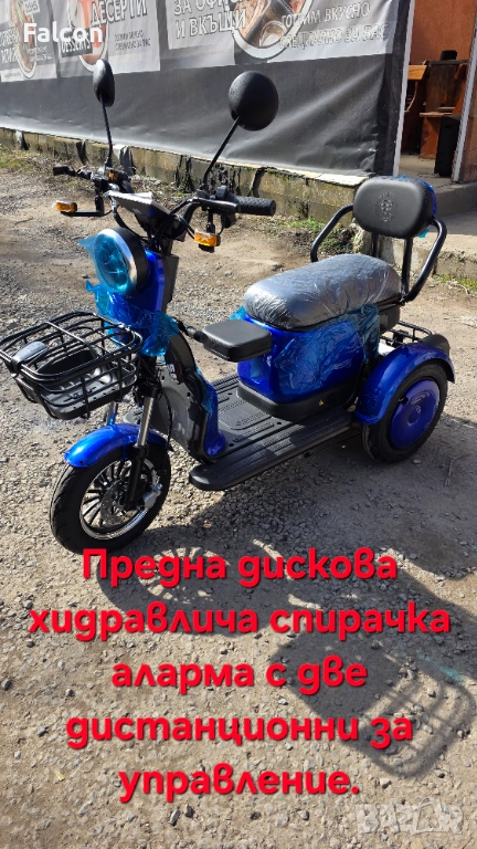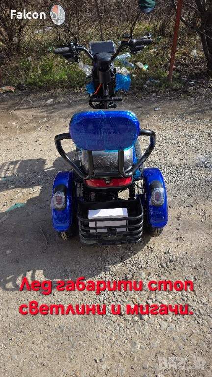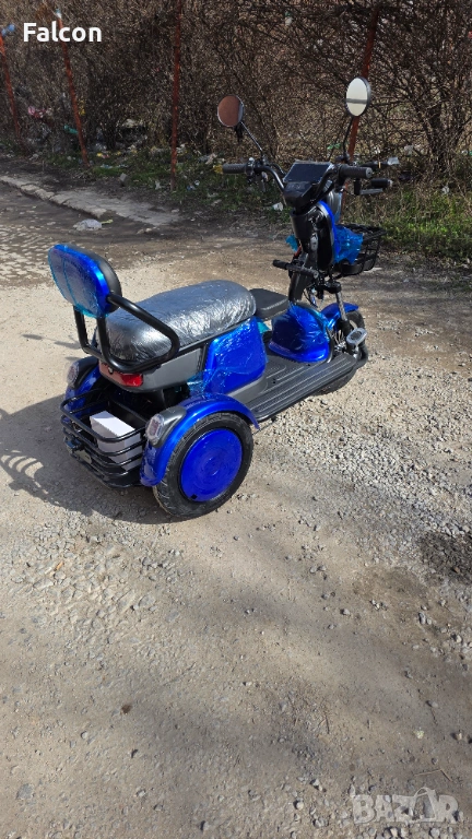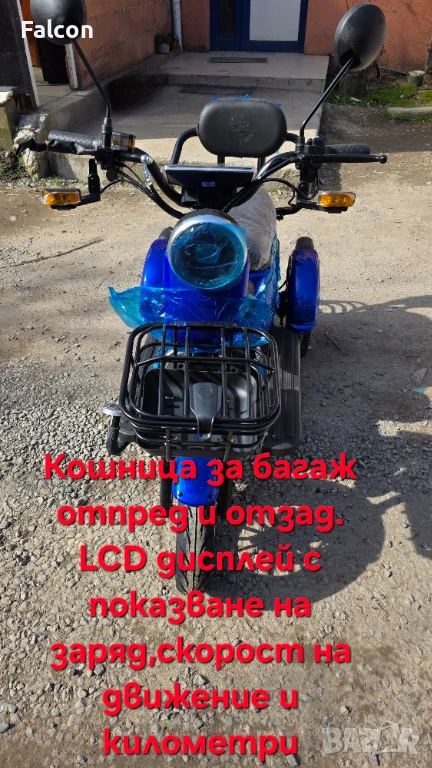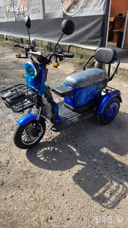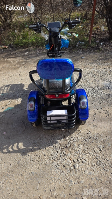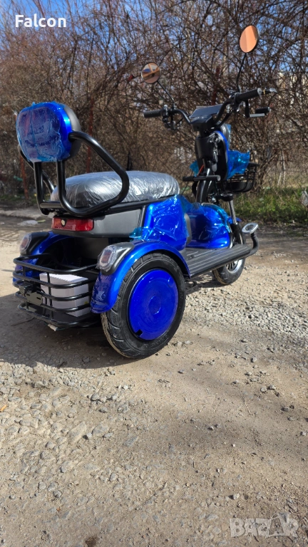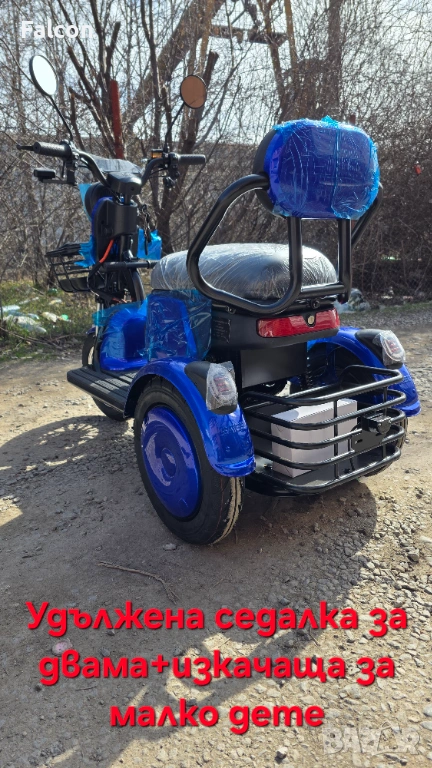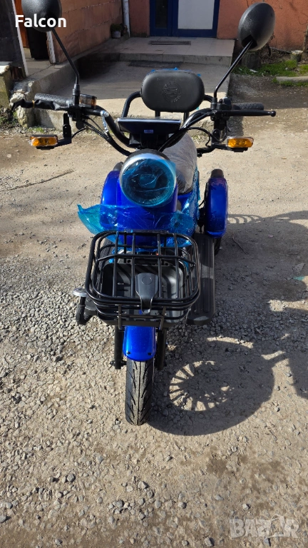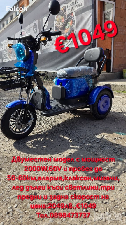 Falcon Pudding Max е двуместна електрическа триколка с мощен 2000W мотор и 60V батерии, предлагаща пробег до 60 км и максимална товароносимост от 180 кг, което я прави подходяща за градска среда и ежедневни нужди.