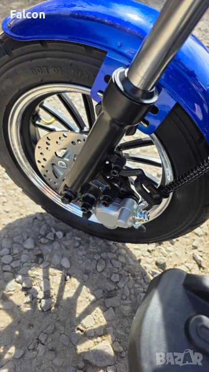Moтoр: 2000W max. безчетков /1000W номинална мошност Батерия: тягови гелови батерии 60V, 20Ah Пробег: до 6О км